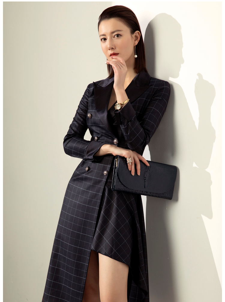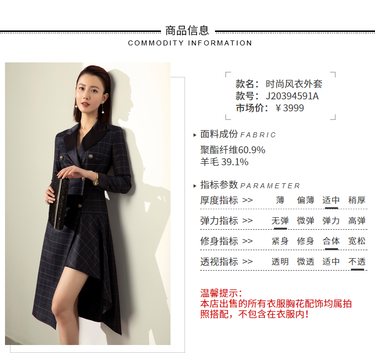 刚柔并济-J20394591A 颈袖添香2020秋冬装新款女士时尚修身韩版外套双排扣风衣女中长款