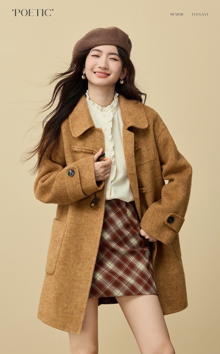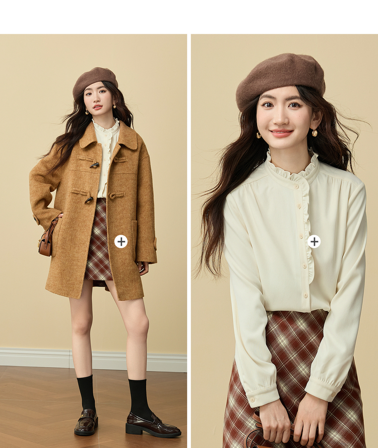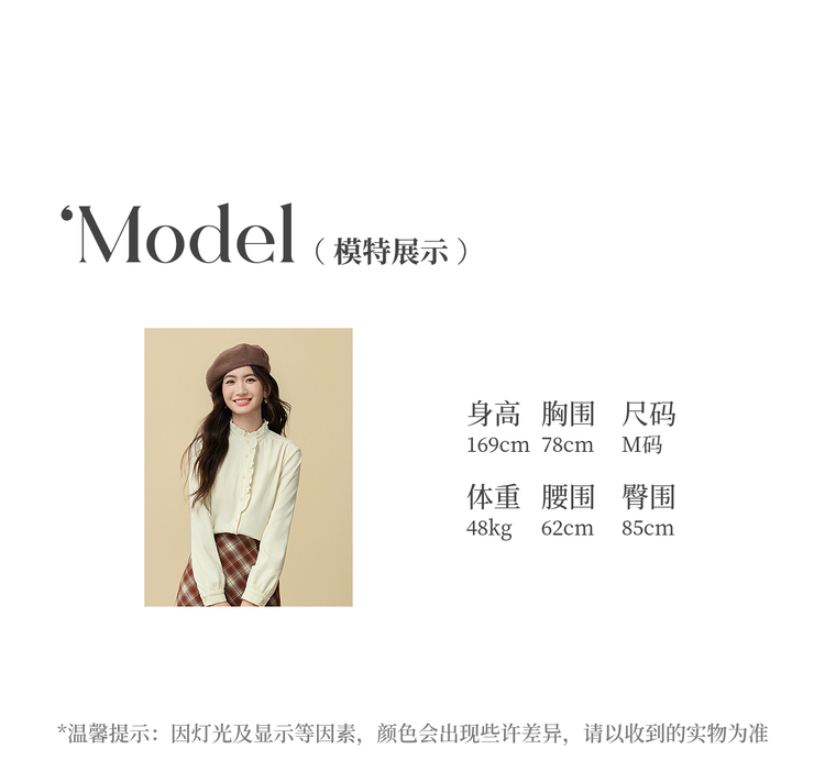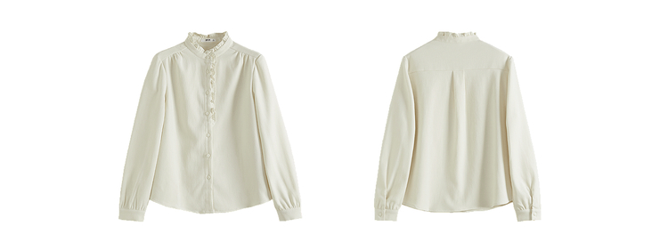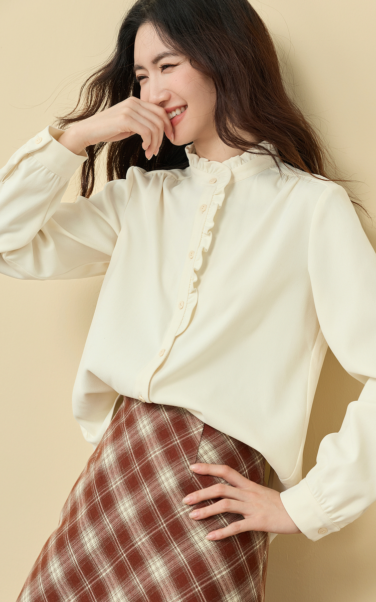 【11/19新品】熙世界法式浪漫木耳边立领衬衫女2025秋冬季优雅气质通勤磨毛衬衣