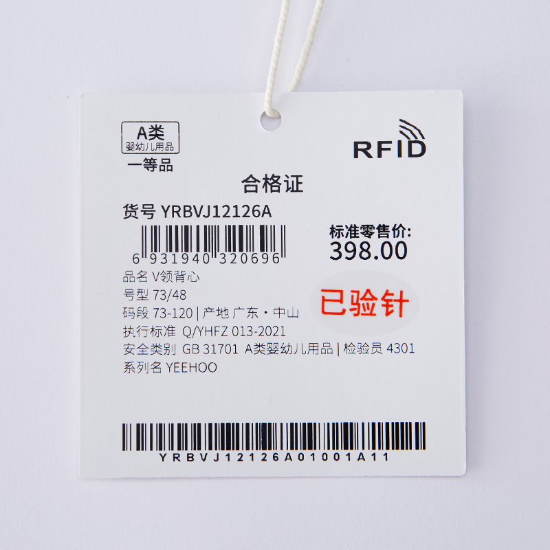 英氏-童衣类(春)F2英毛V领背心, 英氏白, 100CM