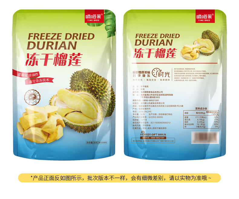【买2送1,数量拍3】嘀嗒果冻干榴莲30g水果干金枕头休闲零食小吃榴莲干脆