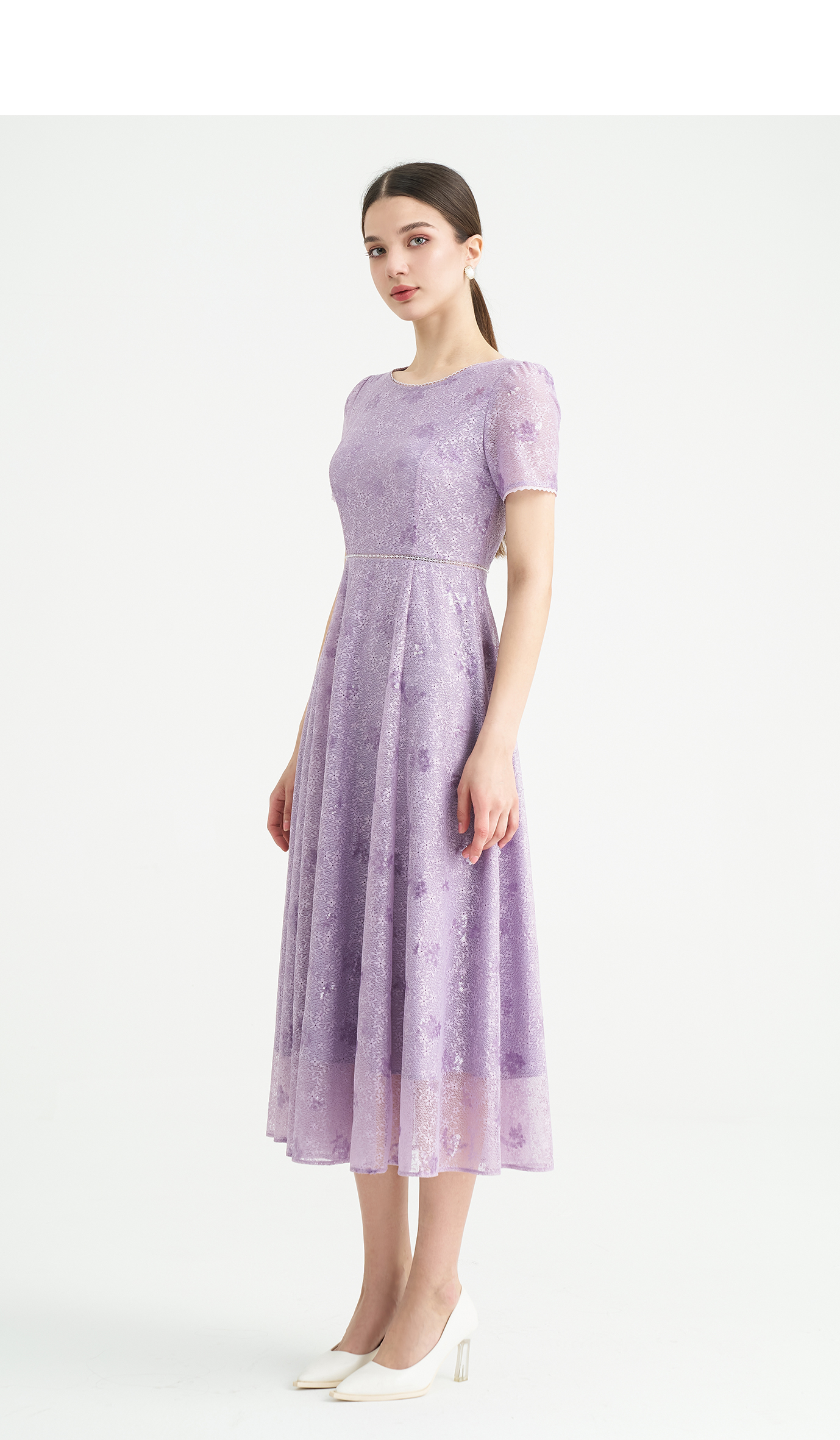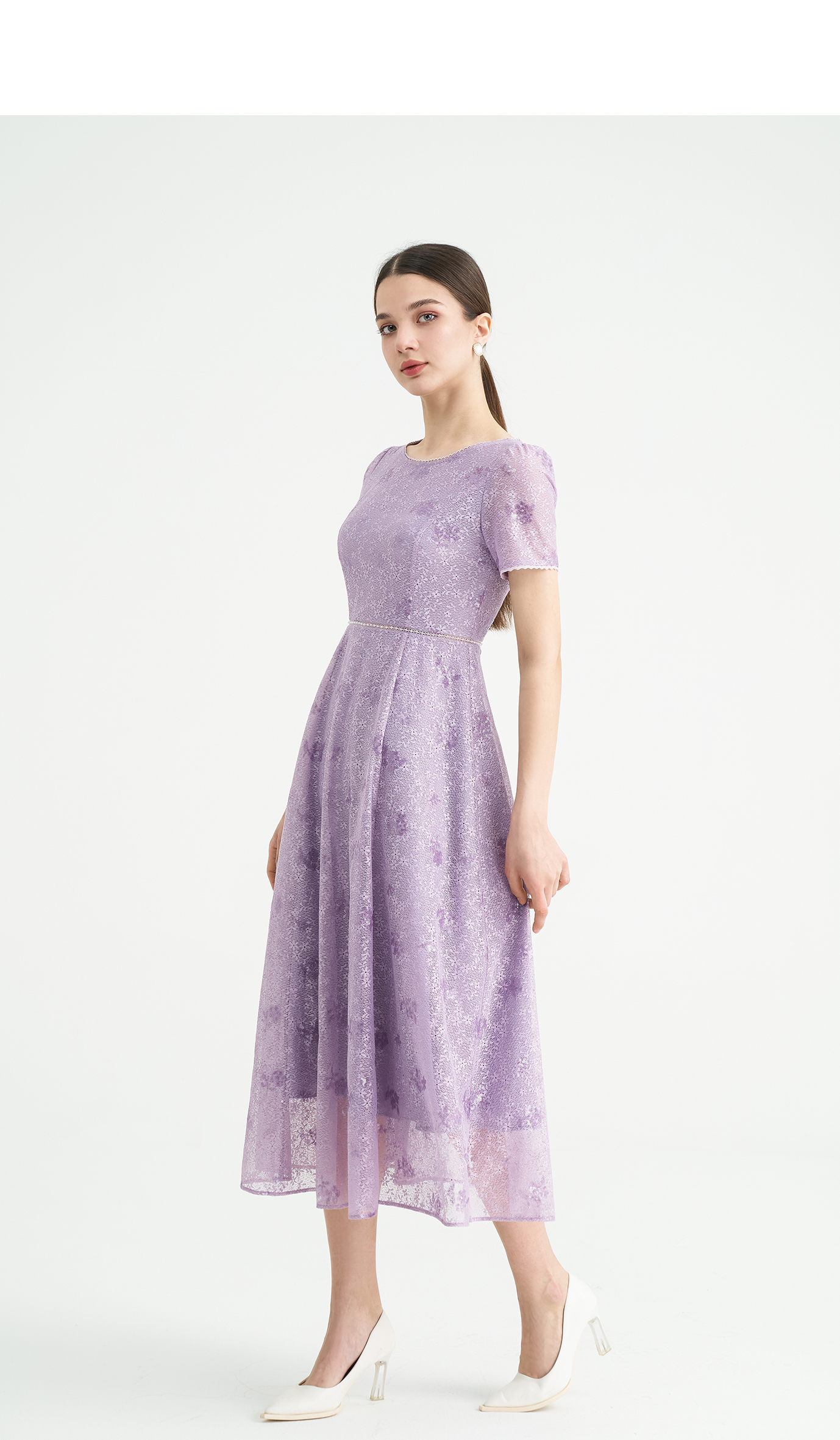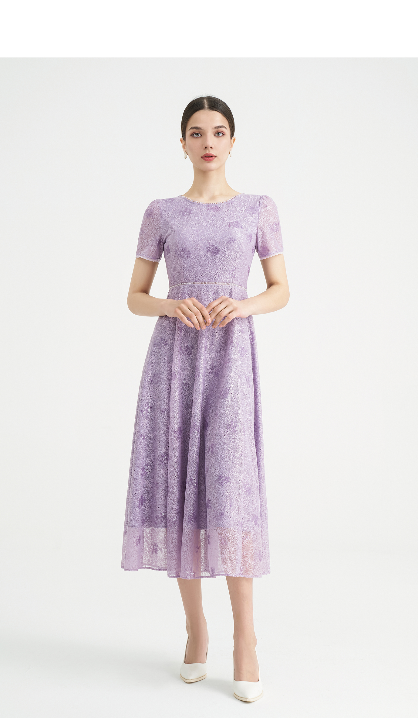 司歌蕾丝圆领短袖收腰连衣裙A891428M