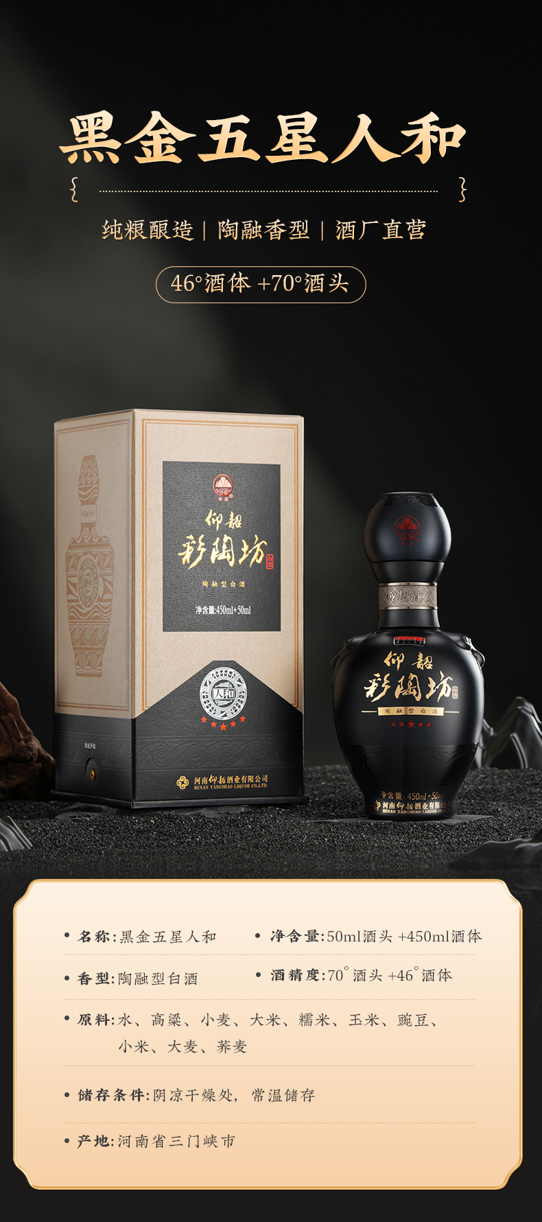 【黑金人和组合装】黑金五星人和 2瓶 500ml 陶融型 +大黄河美酒优品2瓶 500ml 酱芝兼香 纯粮酒