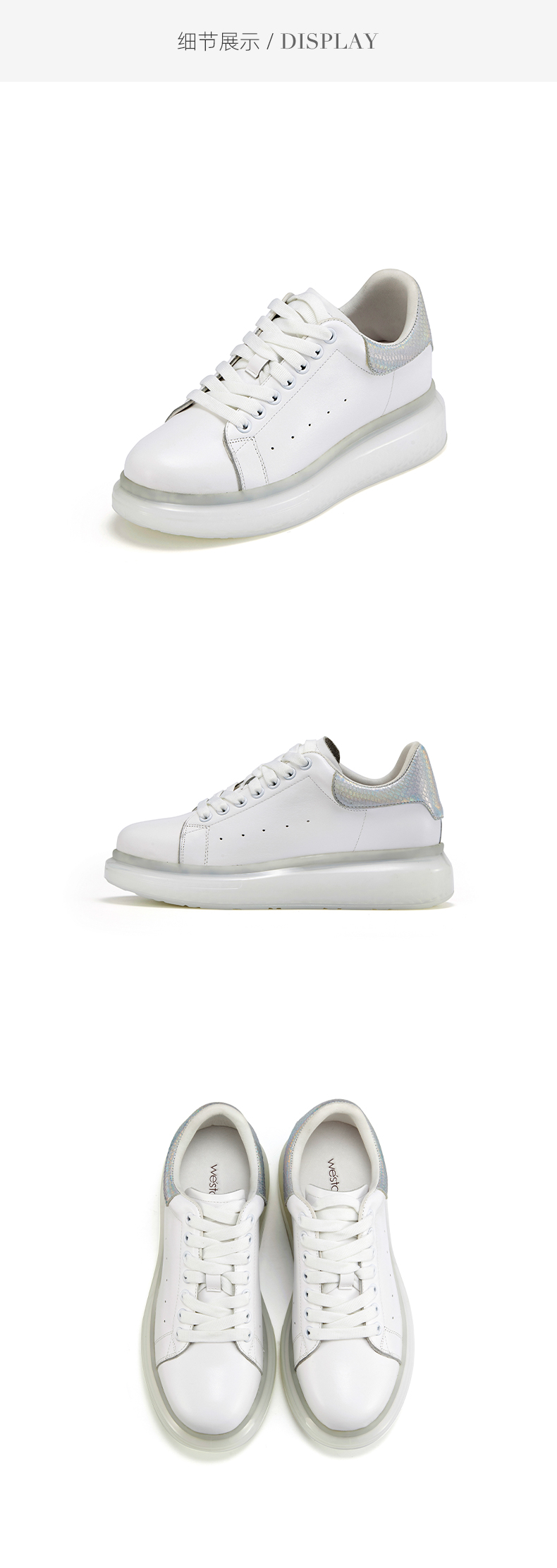 westory2022年春季新款真皮小白鞋厚底透气拼色时髦休闲鞋系带S22AM54611