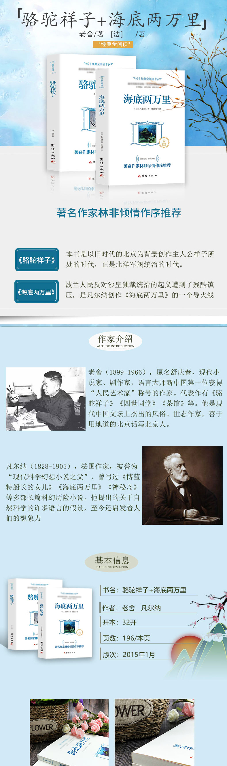 正版2册 海底两万里+骆驼祥子老舍原著完整版语文七年级指定阅读书目初中生课外书青少版世界名著书籍红岩创业史畅销书