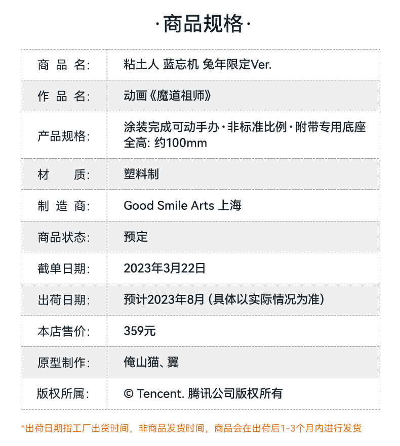 【GSC积分兑换】粘土人 蓝忘机 兔年限定Ver. 魔道祖师 手办模玩