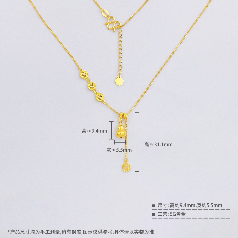 【限时克减150元】足金999 #葫芦 5G黄金镂空AB链福禄满园Y形葫芦流苏福禄连连福佑金调节套链(AG5GTL00485)预售产品下单后不退款不退货不换货不补差价