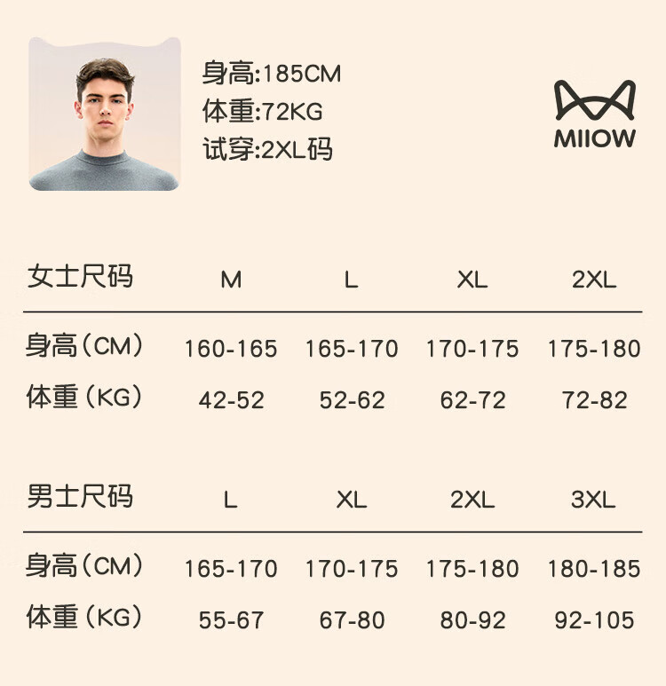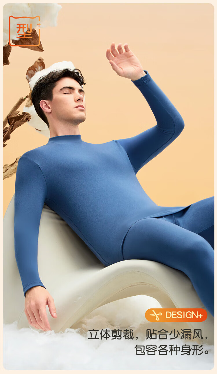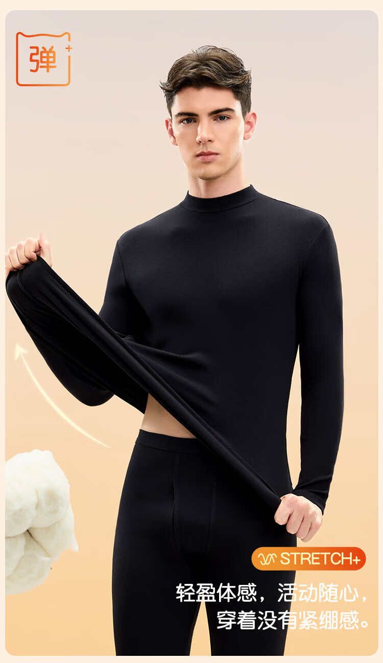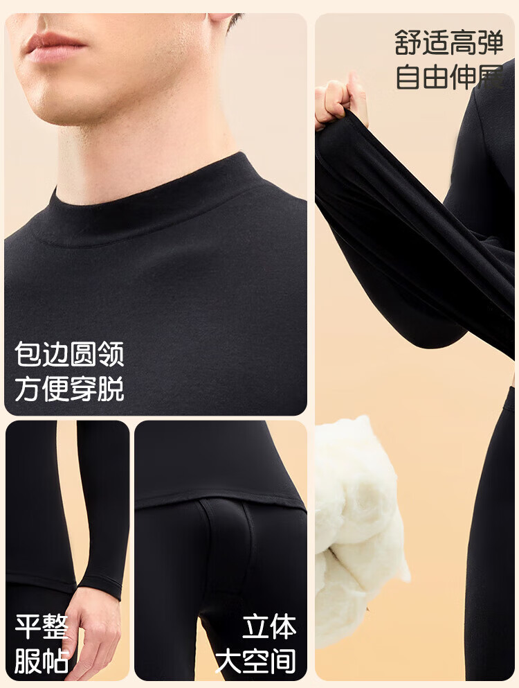 【L-3XL】猫人男士冬款纯棉中领保暖内衣套装