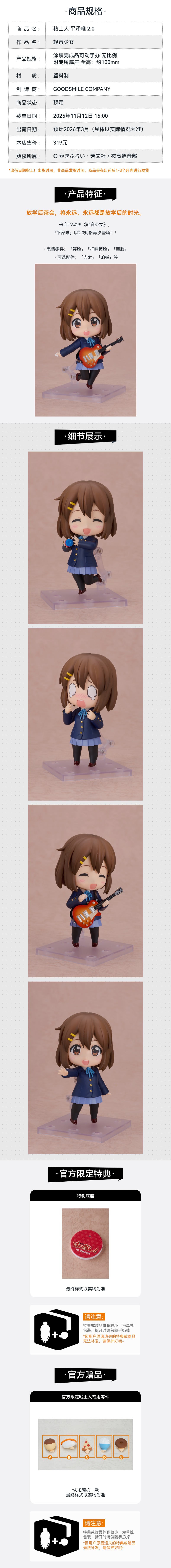 【GSC补款】粘土人 平泽唯 2.0 附官方限定特典 轻音少女