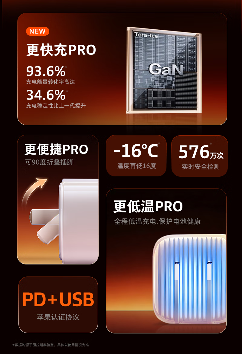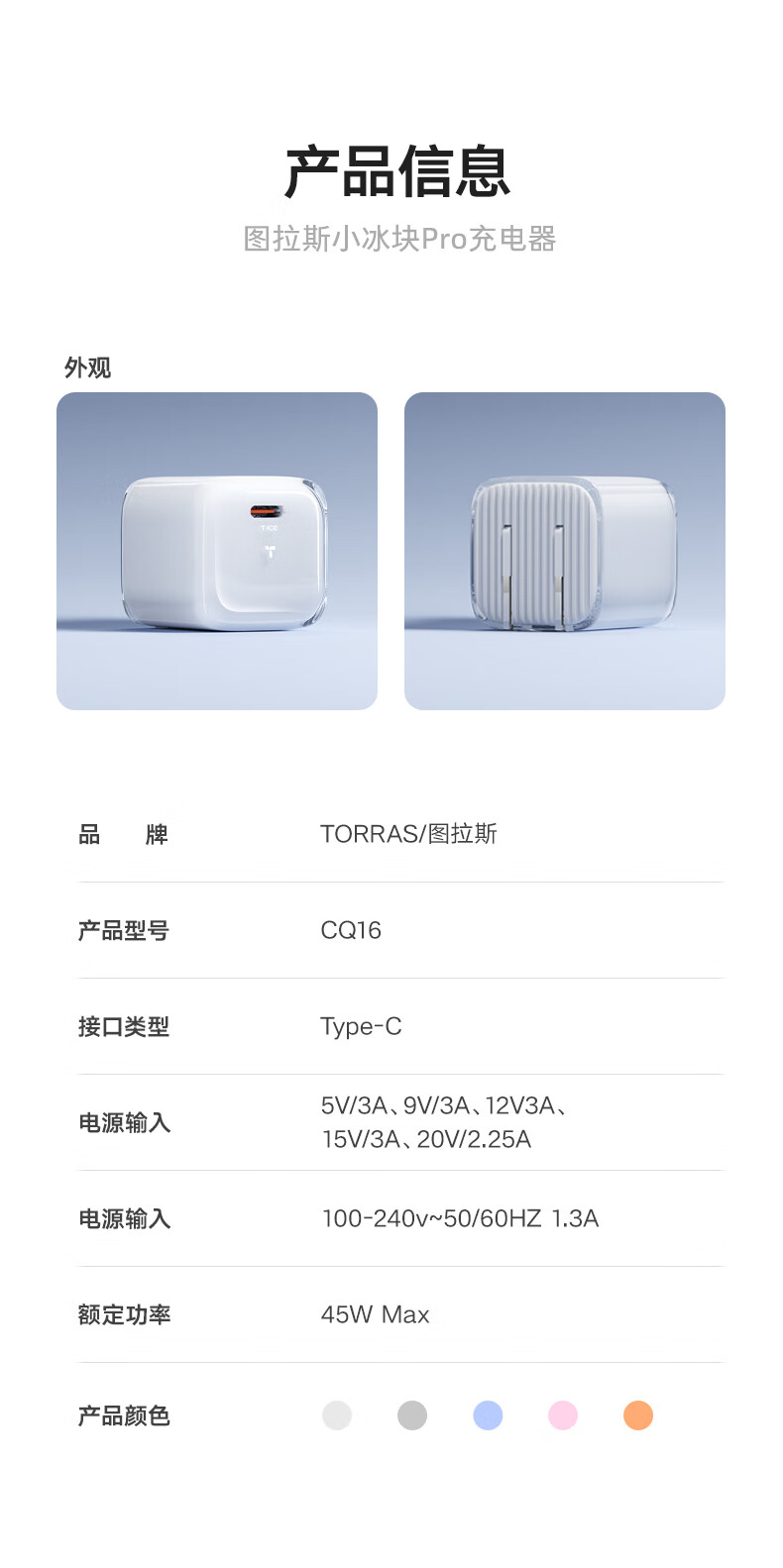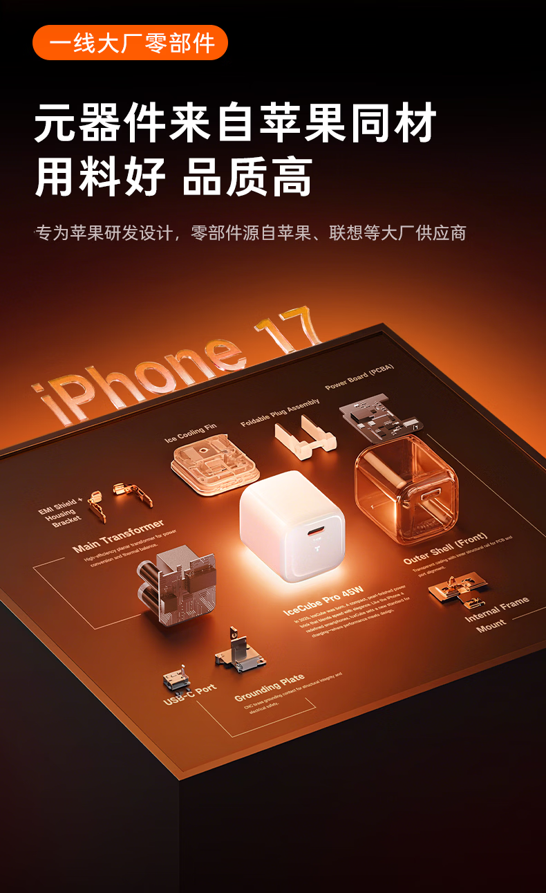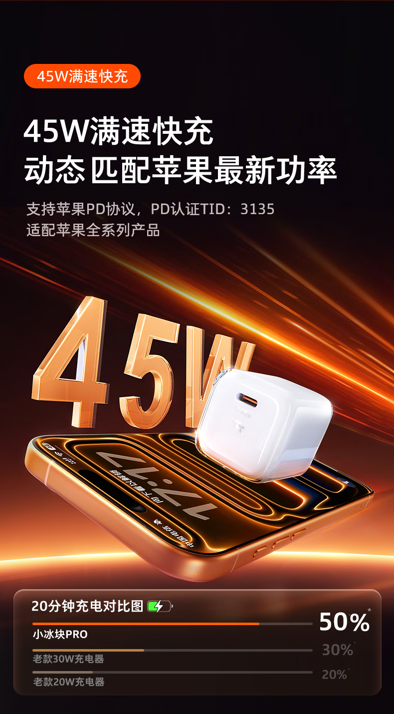 图拉斯小冰块Pro适配苹果45w氮化镓