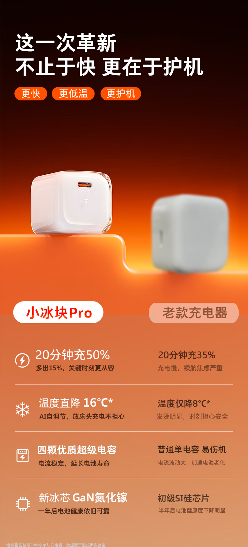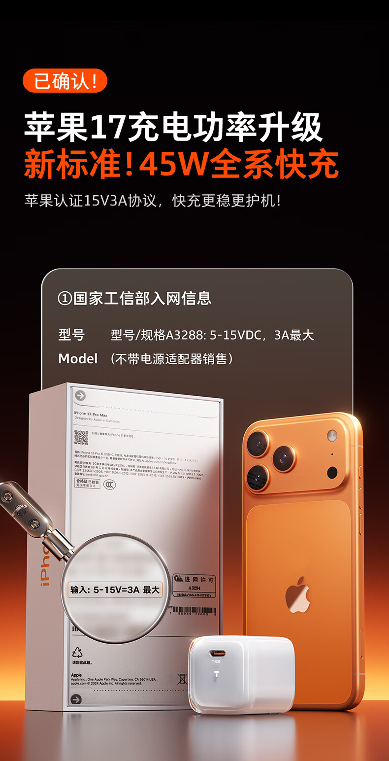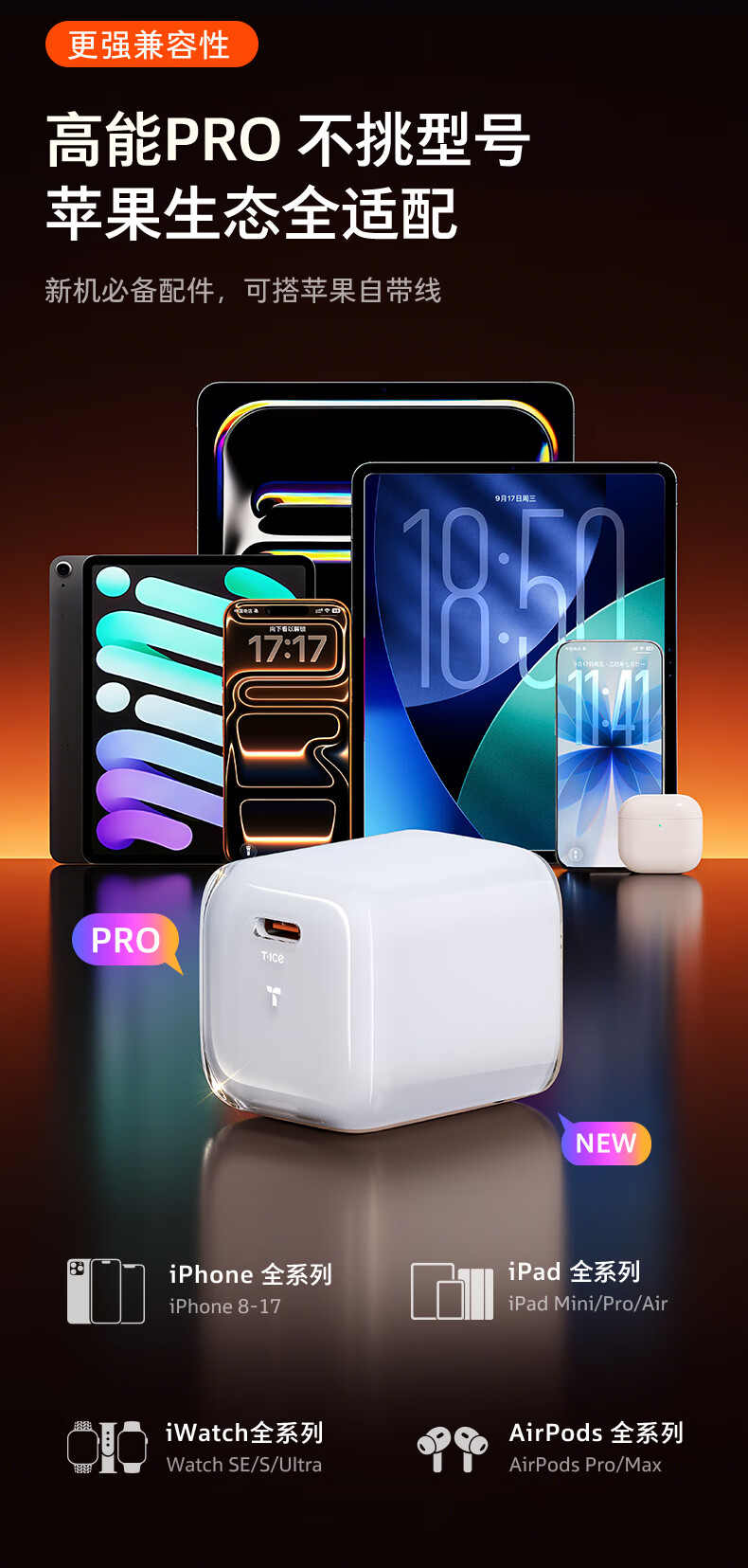图拉斯小冰块Pro适配苹果45w氮化镓