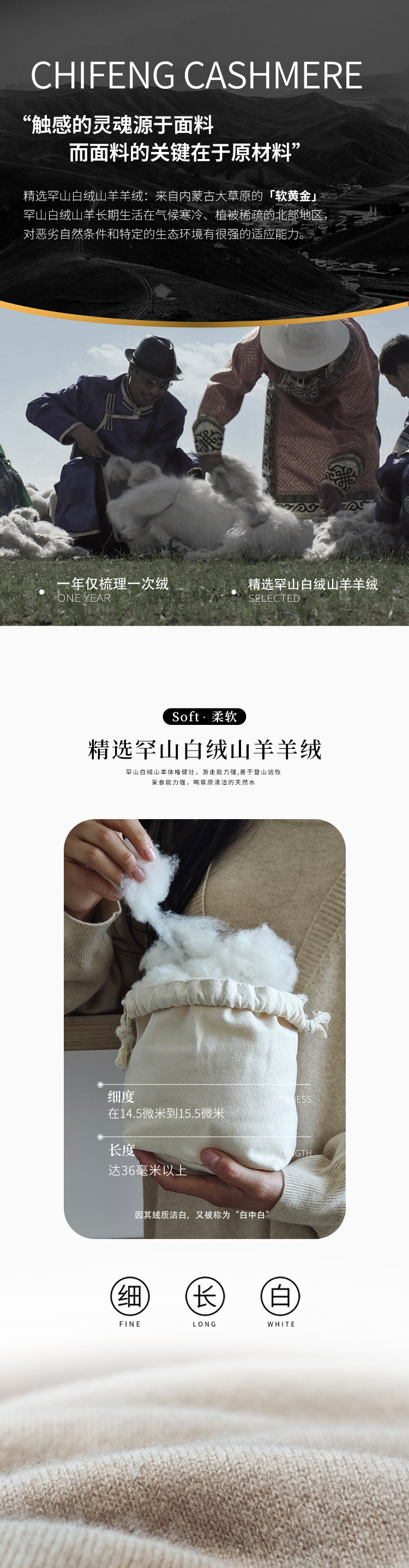 近自然|尽自在 东黎羊绒是赤峰东荣集团自主品牌,自有牧场/羊绒制品全产业链优势,实现了羊绒从“牧场”到“商场”的华丽转变。