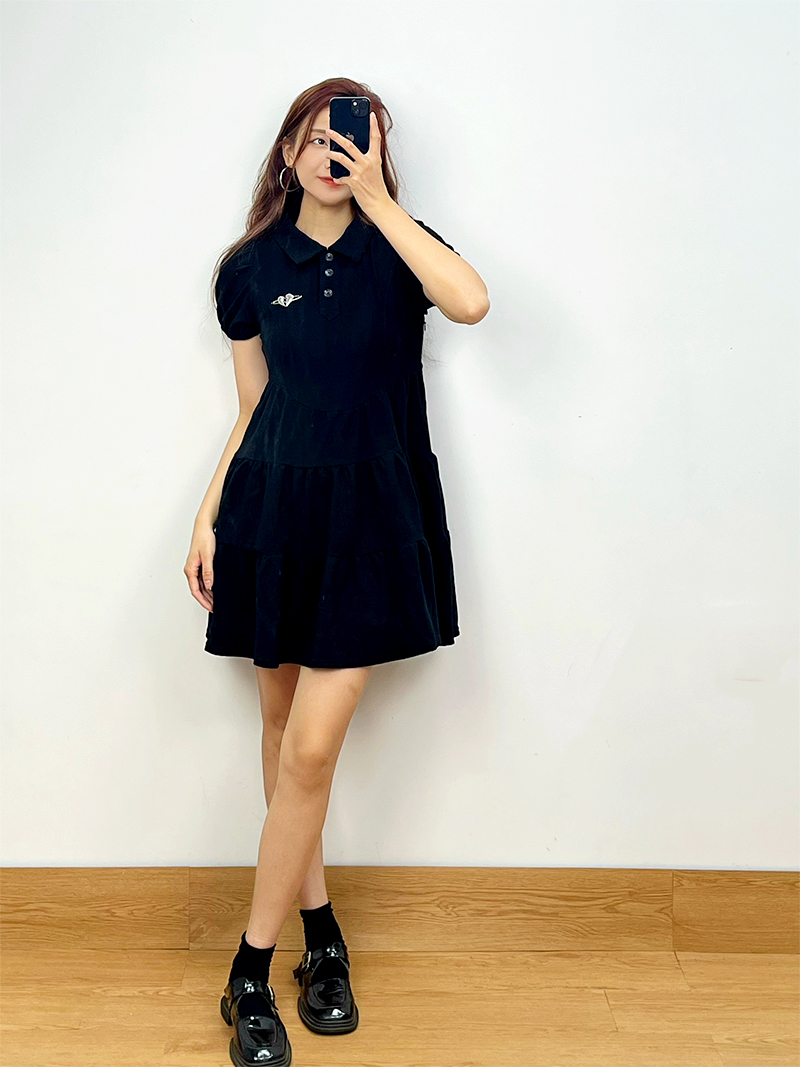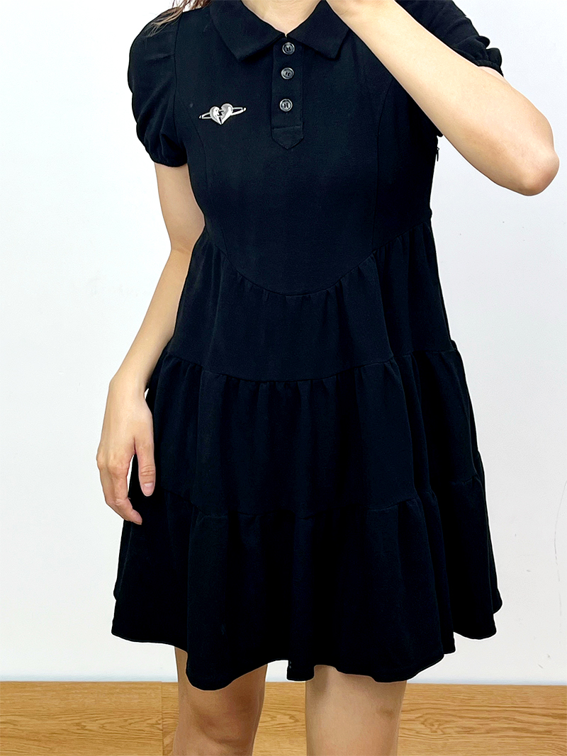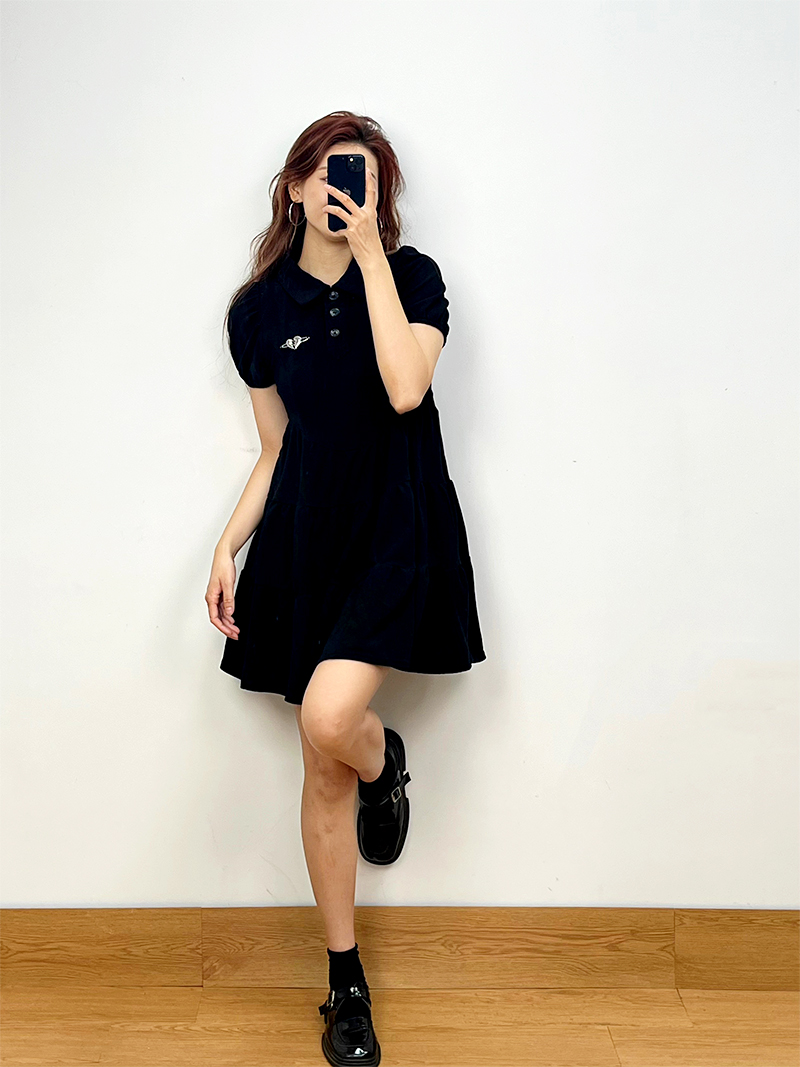 P&X设计师女装夏季连衣短裙 polo裙显瘦气质休闲824208275 黑色