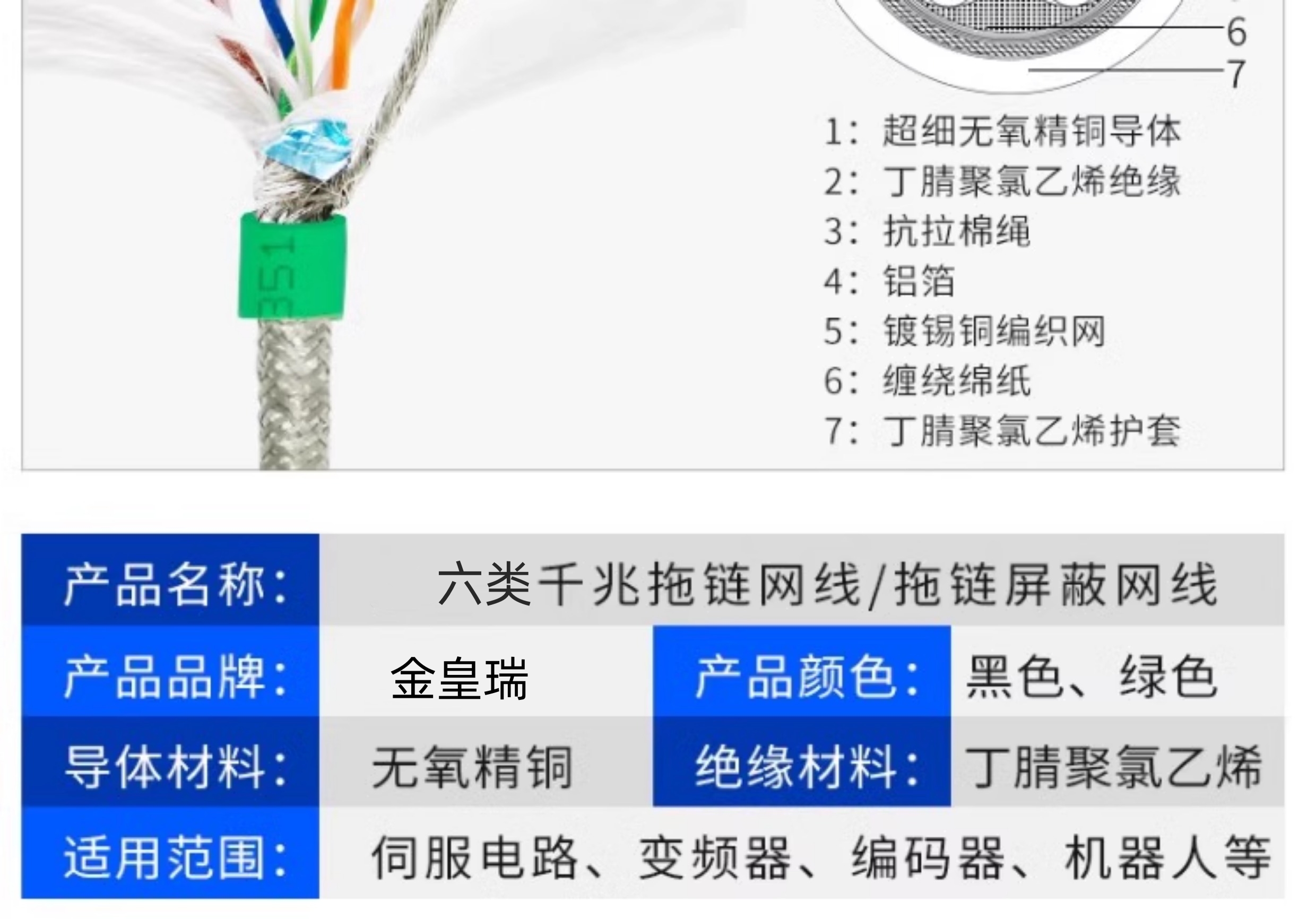 爆款★热销【工业@网线】高柔拖链线超六类6类屏蔽万兆ethercat纯铜profinet伺服千高柔工业网线EtherCAT拖链屏蔽成品超六6类工业网线超五六类千兆伺服通讯总线高柔双绞屏蔽宽带网线