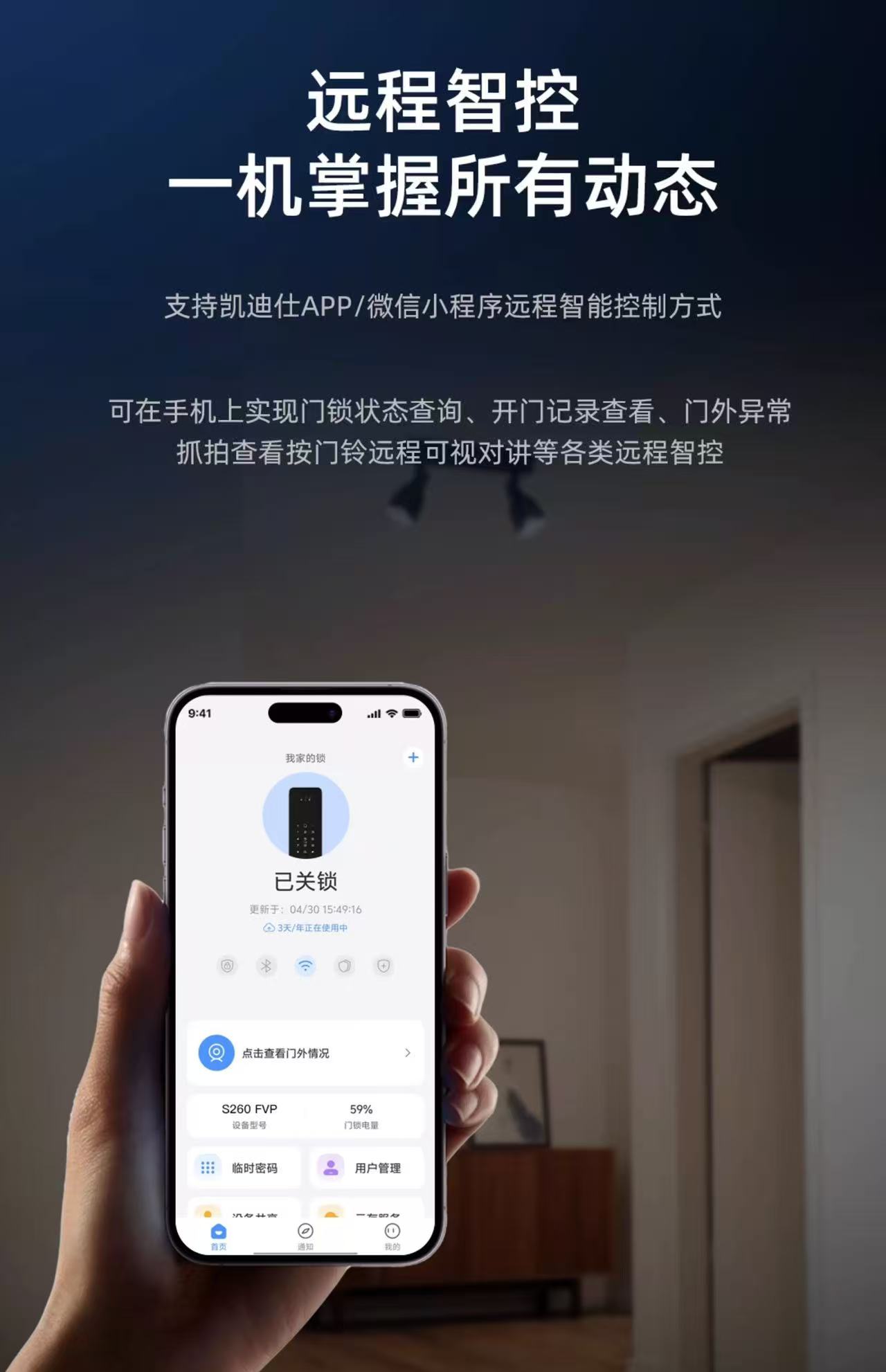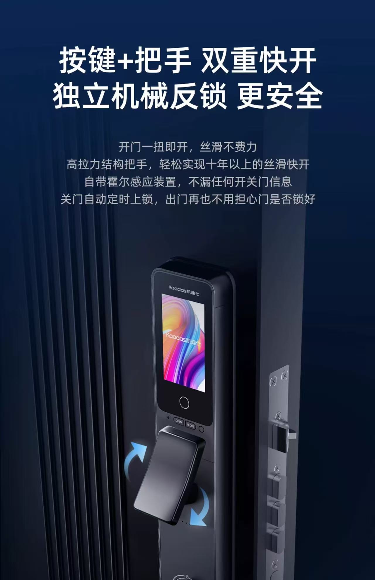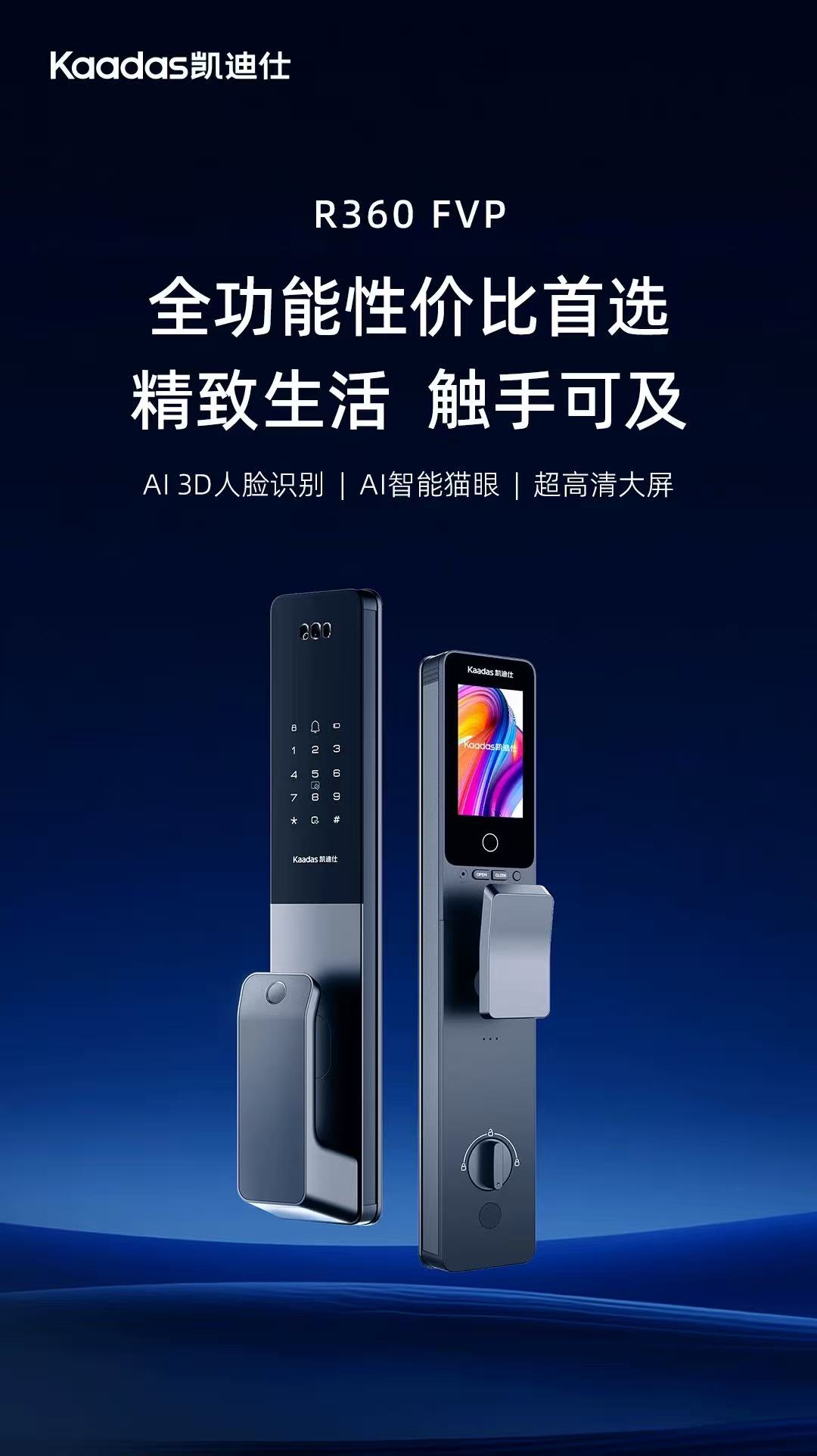 【四川】凯迪仕(KAADAS)R360FVP指纹锁智能锁家用防盗门电子锁 高清可视屏幕 远程解锁 曜石黑