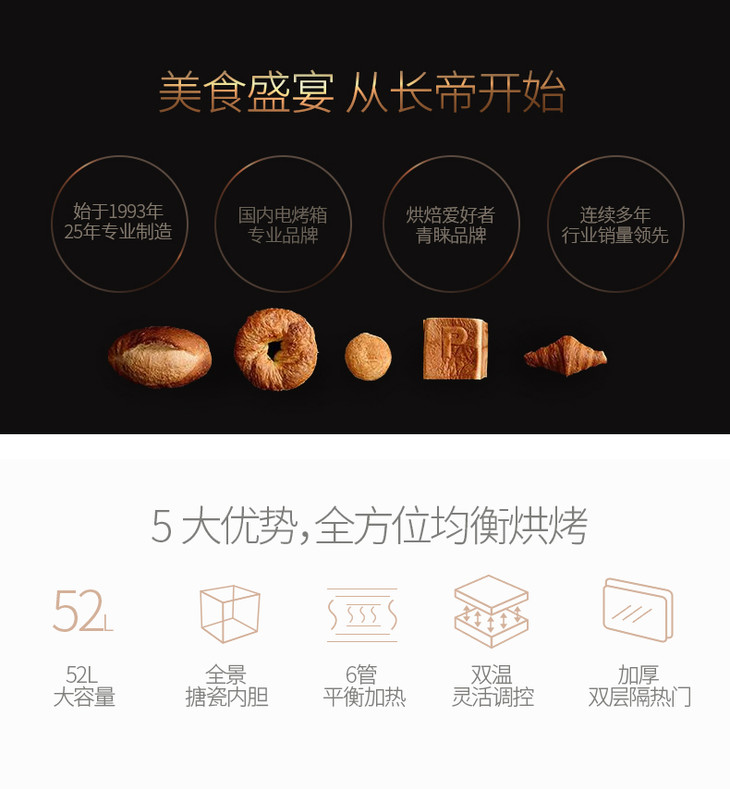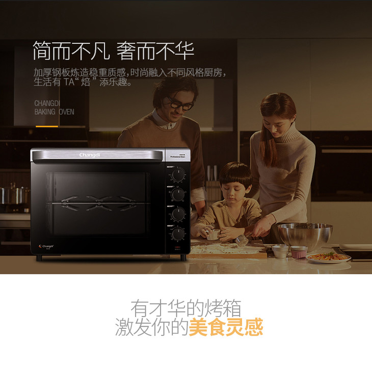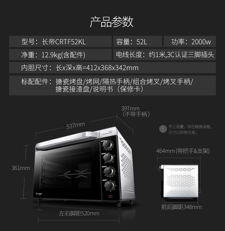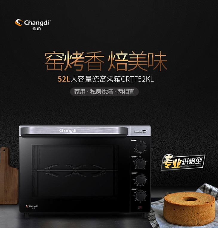 长帝CRTF52KL烤箱家用烘焙多功能全自动52升大容量电烤箱