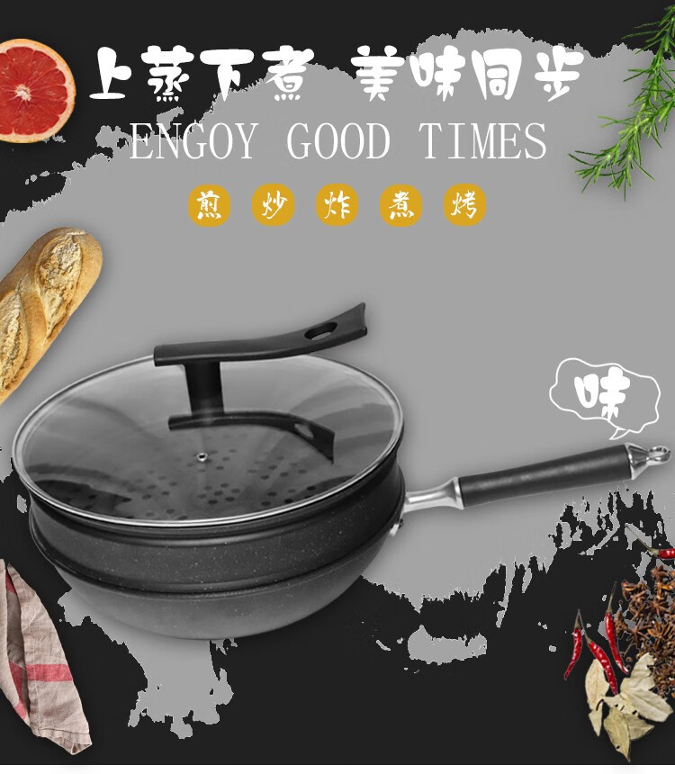 都市太太(DStt)都市太太肯尼特蒸炒锅黑色燃气灶电磁炉通用_黑色