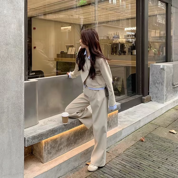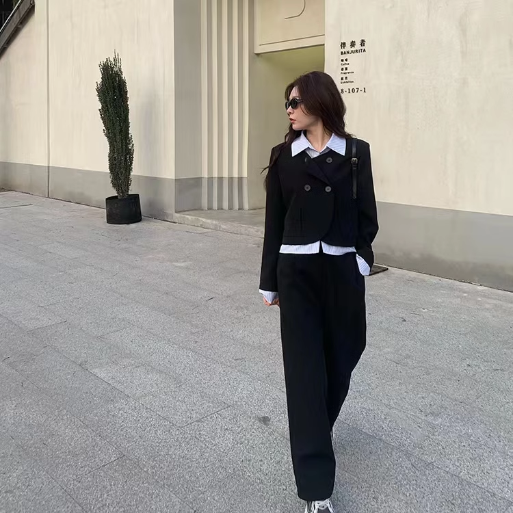 金蘑菇菇黑标时尚 温柔陷阱/醋酸气质休闲西装套装 通勤chicol