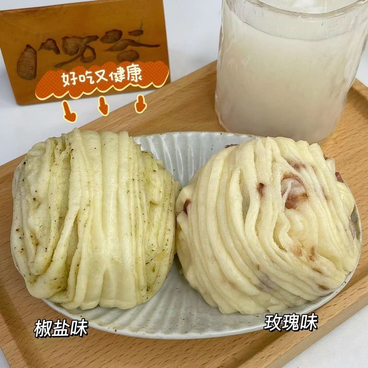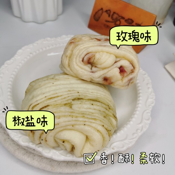 吃起来跟普通花卷完全不同,入口不是木呆呆的瓷实感,而是柔软又富有韧性的~蒸制过后,一层一层,又薄又润,浸润着玫瑰花香或者椒麻香,简直就是本命花卷!