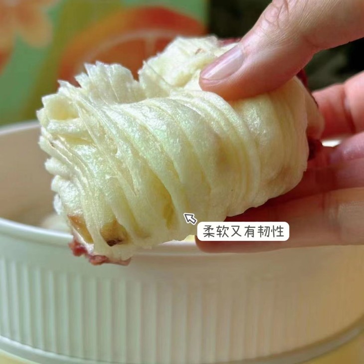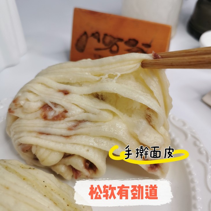 吃到嘴里不像普通面皮一般粘牙,也不同于植物油开酥的包子皮,分层多但易散!而且可以让人体验到手撕千层的快乐感觉