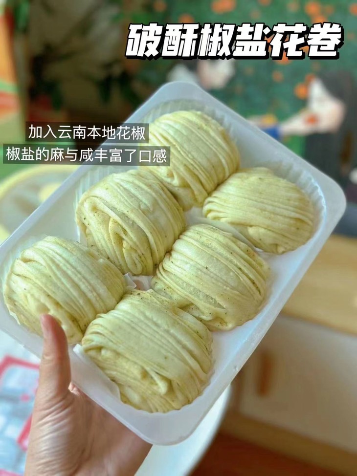 在自然微甜的面皮中加入云南本地花椒,椒盐的麻与咸丰富了口感层次,增加了花卷风味~