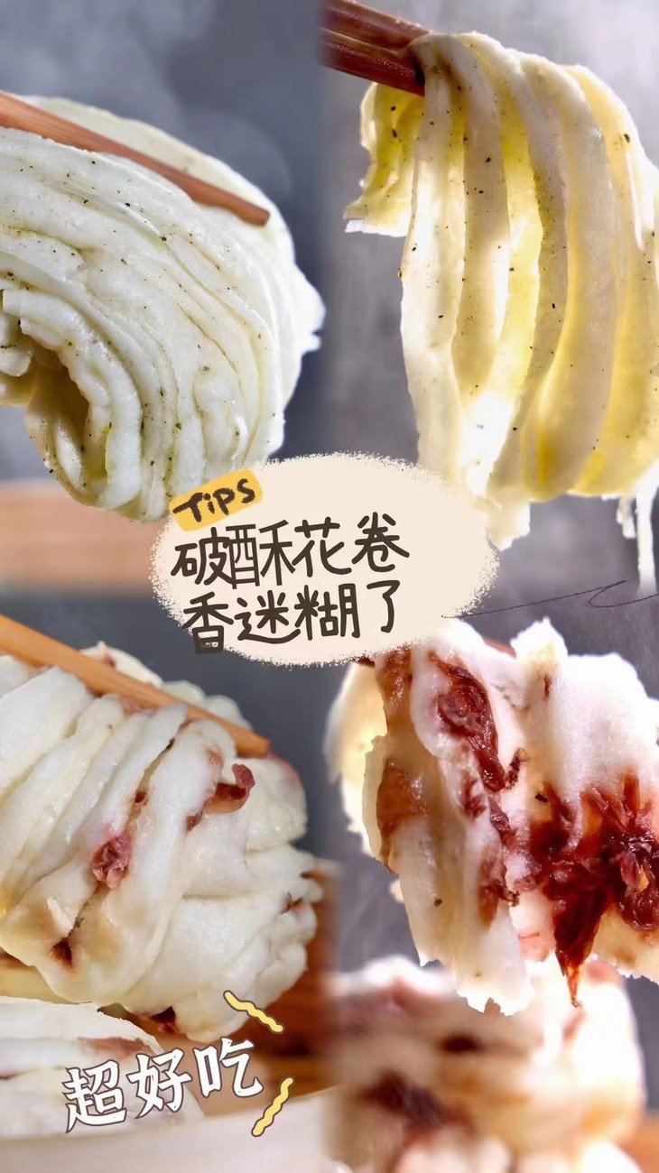 老昆明【破酥花卷】玫瑰+椒盐,松松软软,一抖就散开,面香浓郁,香迷糊了,比我们家的破酥包还馋人! 猪油开酥,手擀面皮,宣纸般蓬松,一口酥软油润,香!酥而不散!