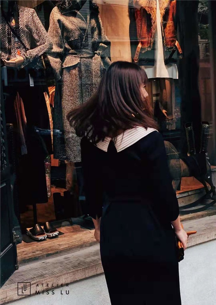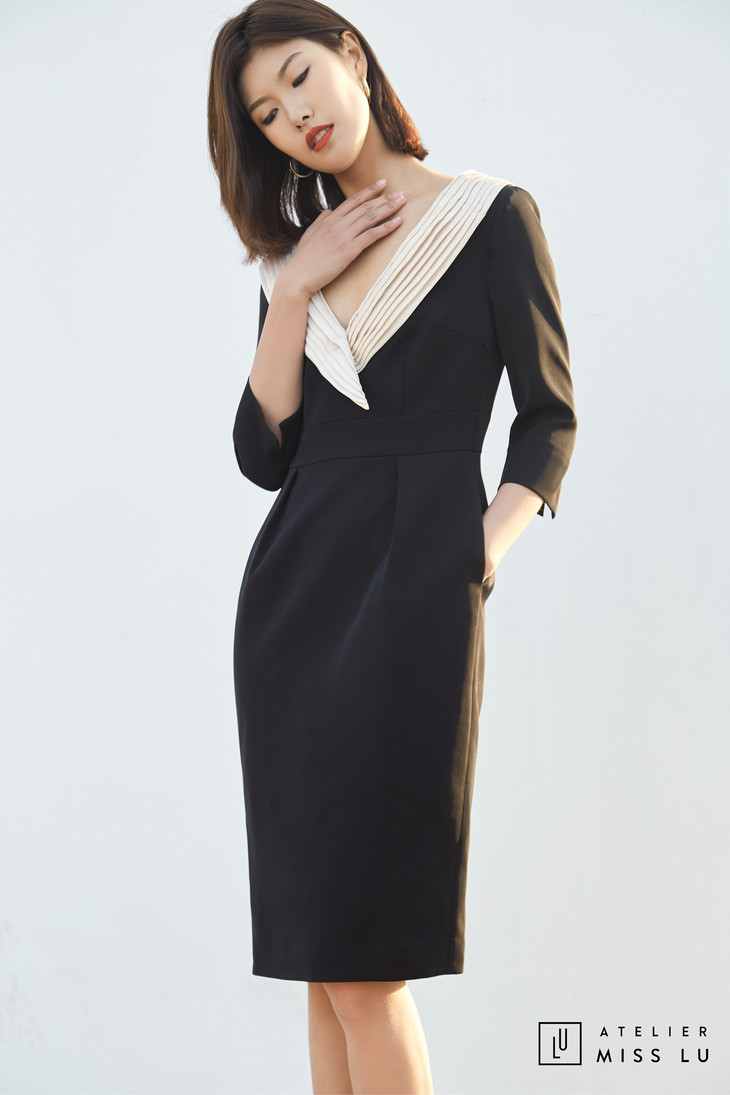 AtelierMissLu / Daisy-开领黑色复古连衣裙