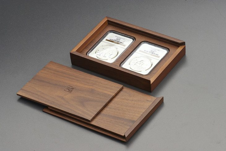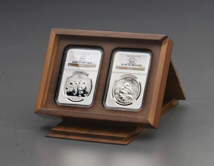 黑胡桃横向双枚装NGC钱币盒,采用进口正宗美国黑胡桃精工制作,非常精美,很上档次,尺寸123*162*31mm,盒体开口向右,盒面素面无文,内隔板阴刻本色老钱庄方印商标.盒内槽孔适用于NGC型各时期的评级币盒,也适用于其它类似于NGC型的(华夏,保粹,华龙,众诚,PCCB二代盒等,园地,大榕树,宝沪等)评级币盒.木盒不包括图中钱币!