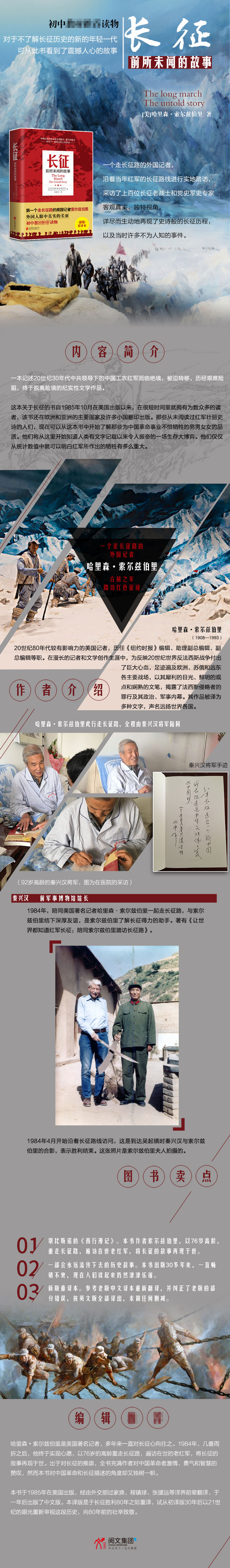 《长征(前所未闻的故事)》于1985年在美国出版,经由外交部过家鼎、程镇球、张援远等译界前辈翻译,于一年后出版了中文版。本译版是于长征胜利80年之际重译,试从初译版30年后以21世纪的眼光重新审视这段历史,向80年前的壮举致敬。