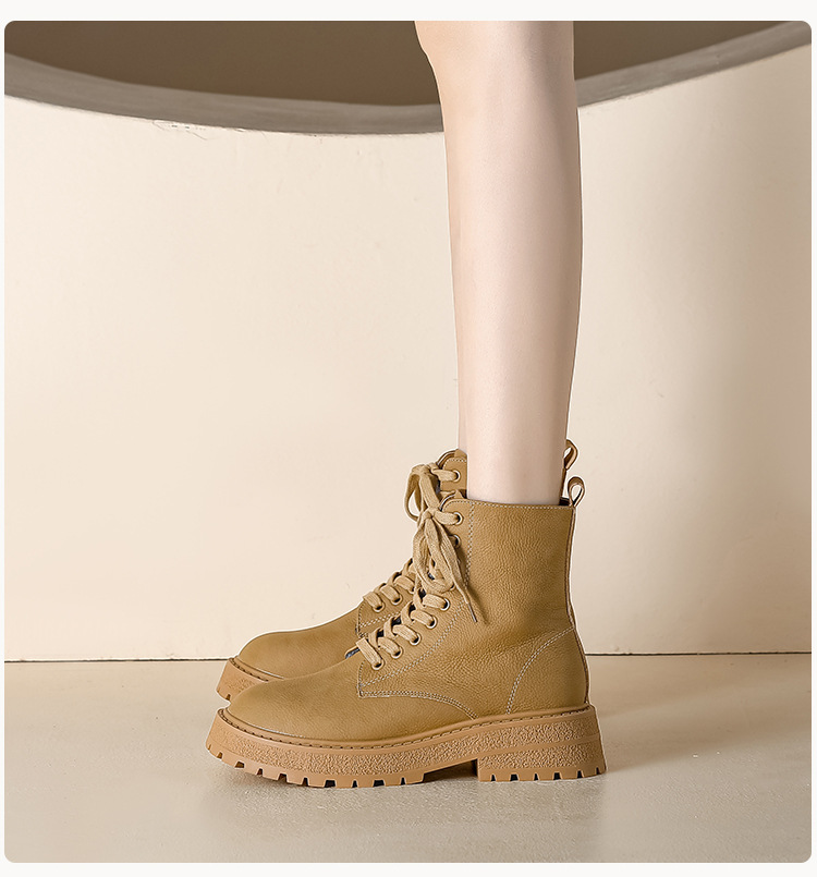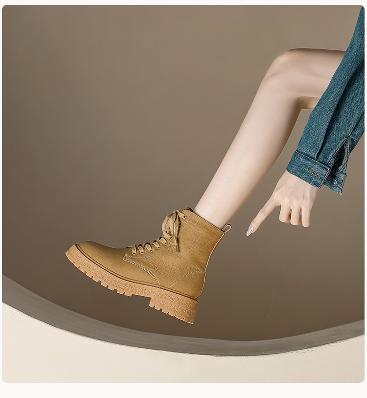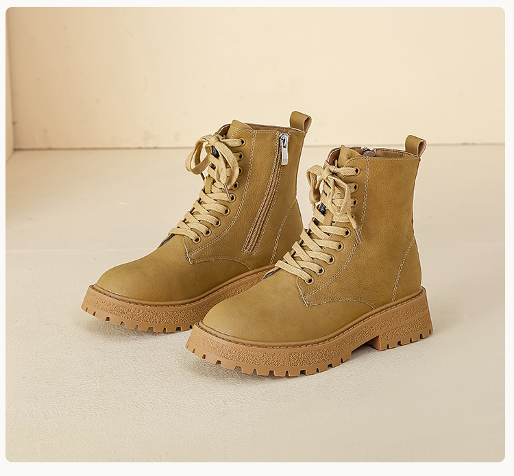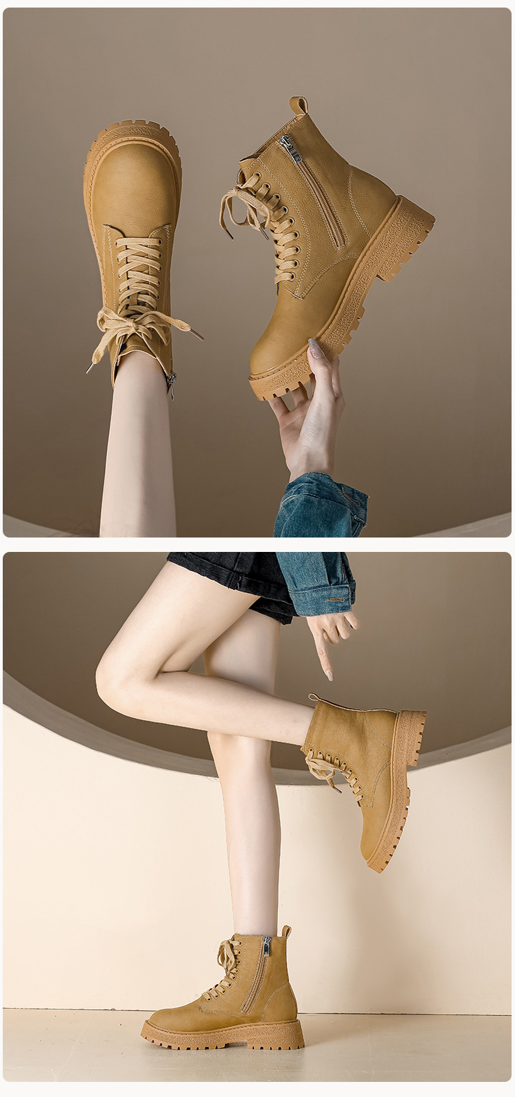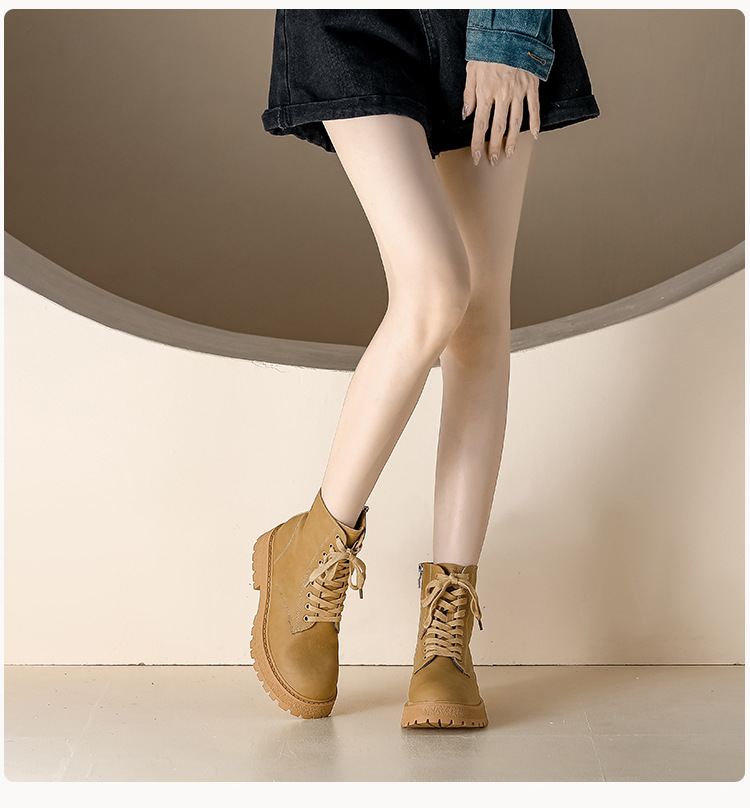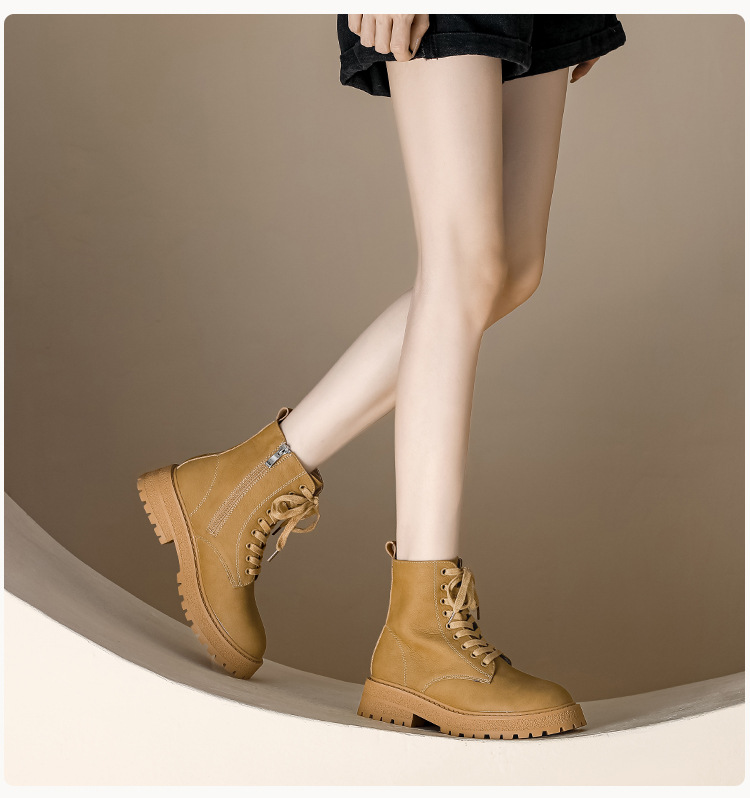 【女鞋专场】真皮英伦风厚底马丁靴女2023年春秋新款百搭短靴复古纯色大黄靴女