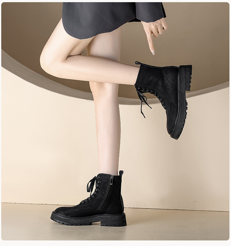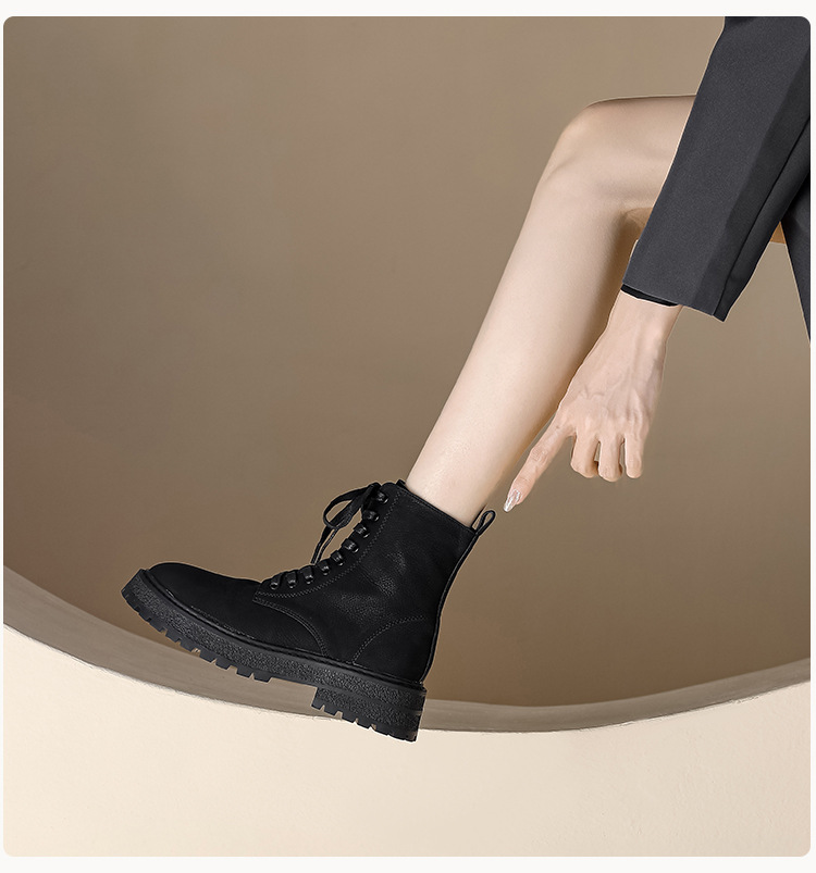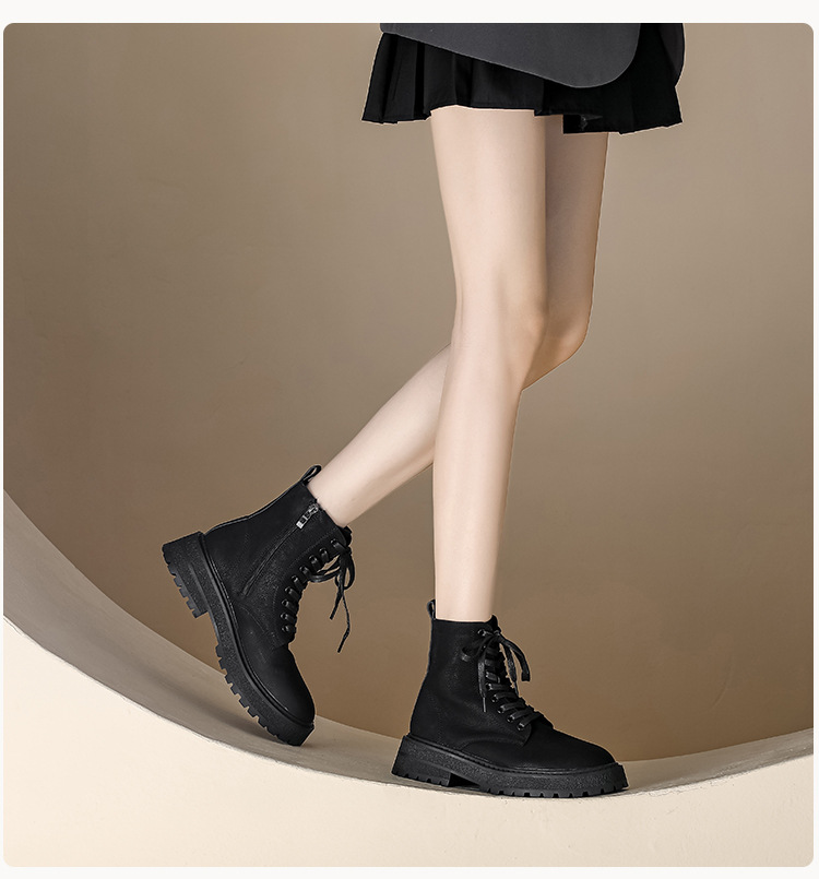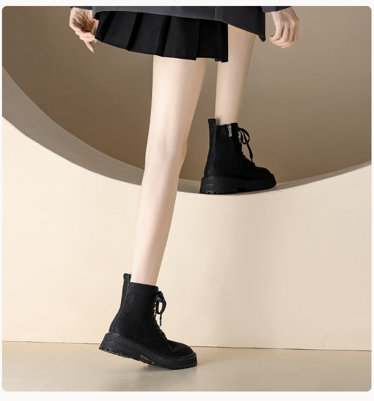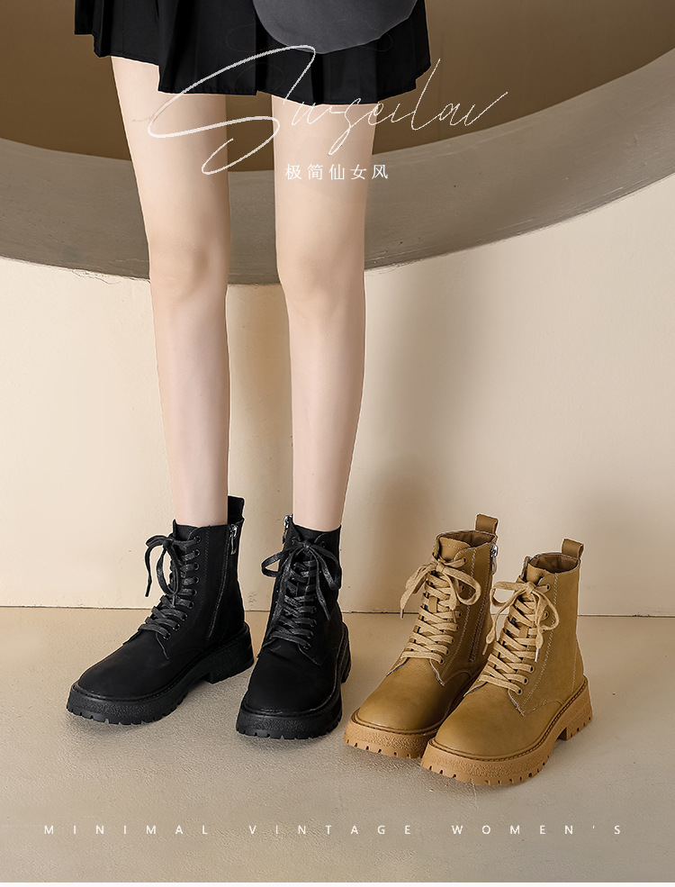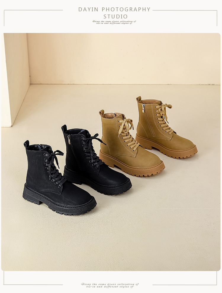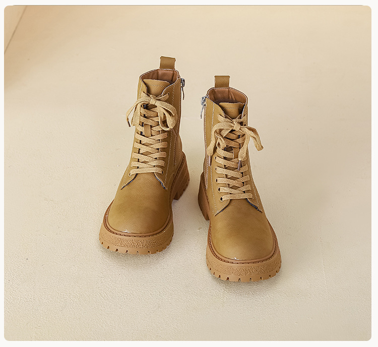 【女鞋专场】真皮英伦风厚底马丁靴女2023年春秋新款百搭短靴复古纯色大黄靴女