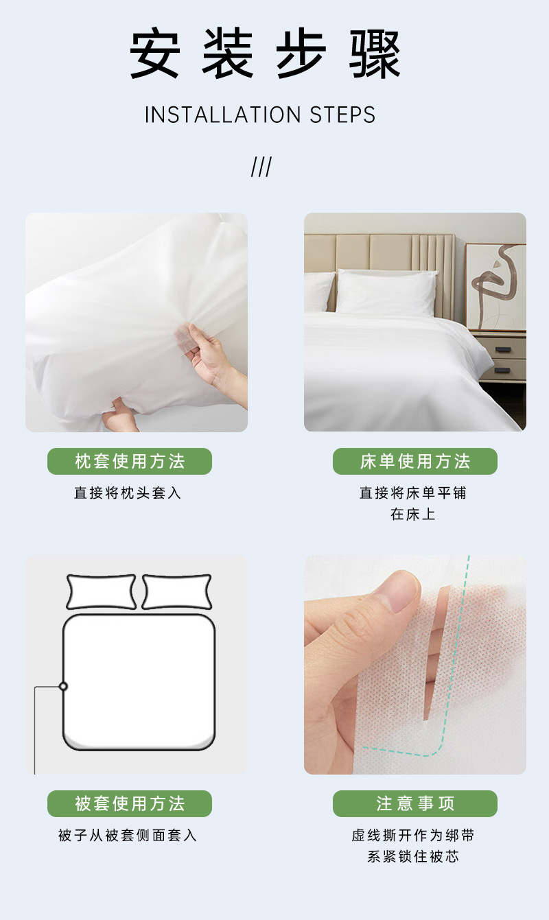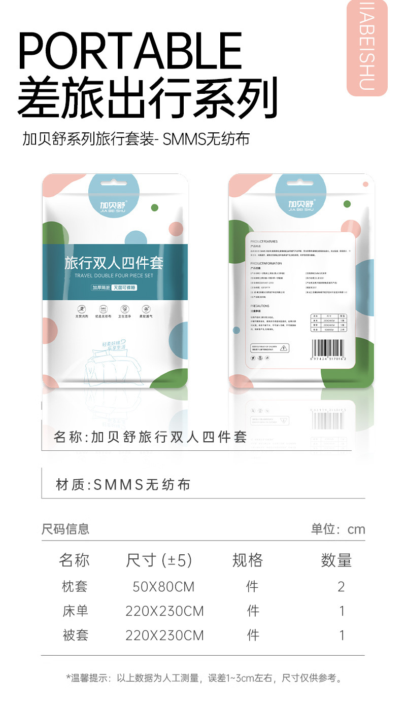 【出行必备!一次性旅行四件套】卡通印花床单被套枕套酒店出差便携双人床上用品,开启健康旅途,便携床单被罩就搞定!-ry