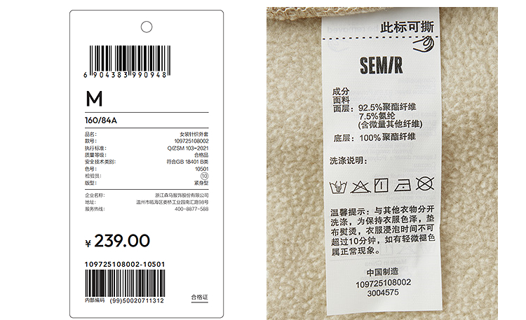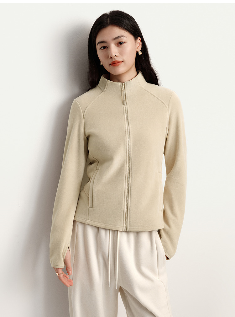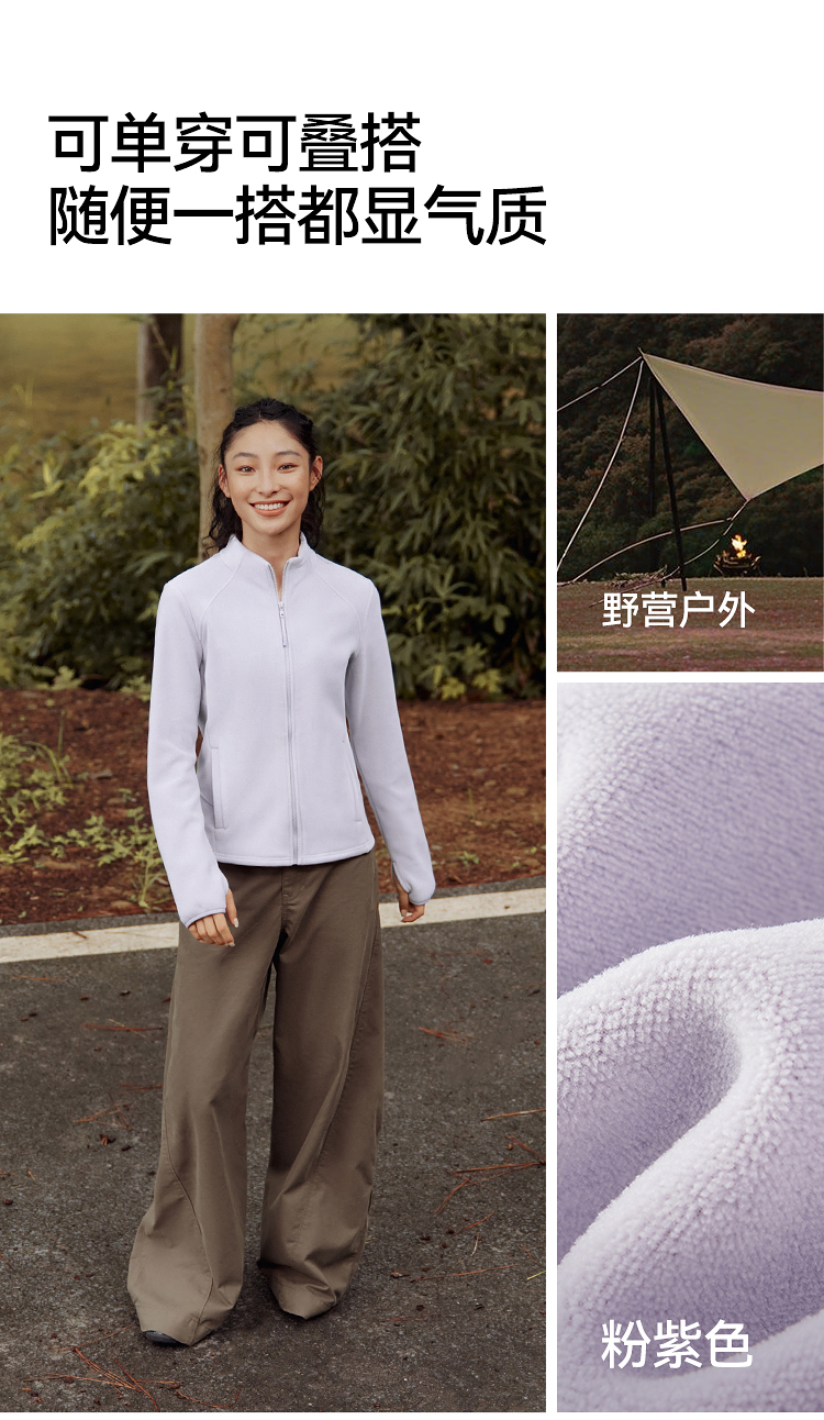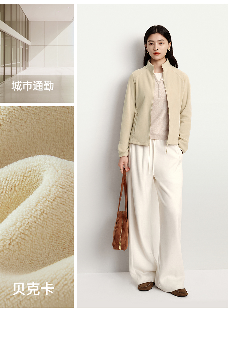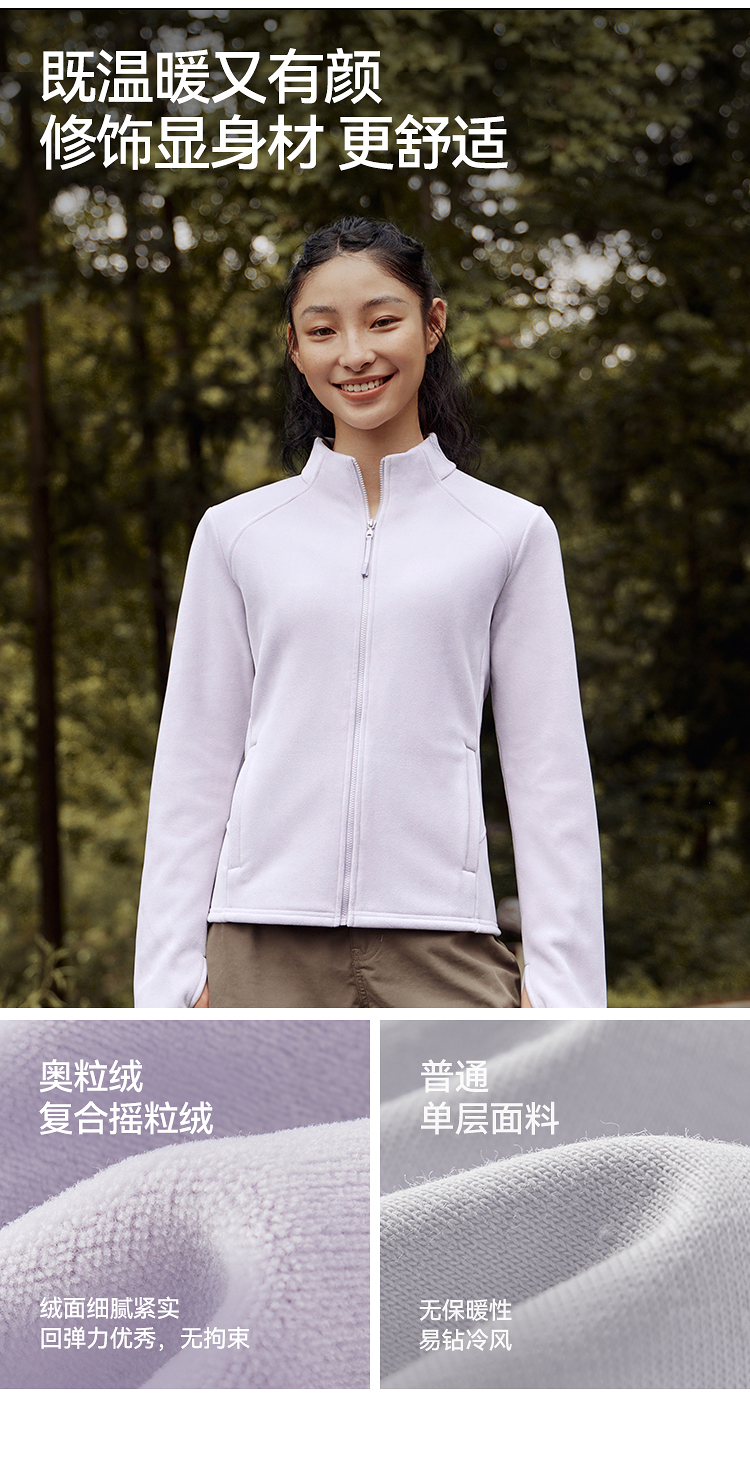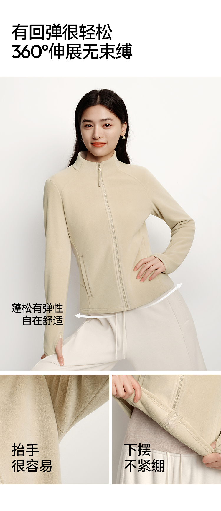 森马外套女分割紧身立领夹克显瘦2025新款冬抗静电摇粒绒内搭气质