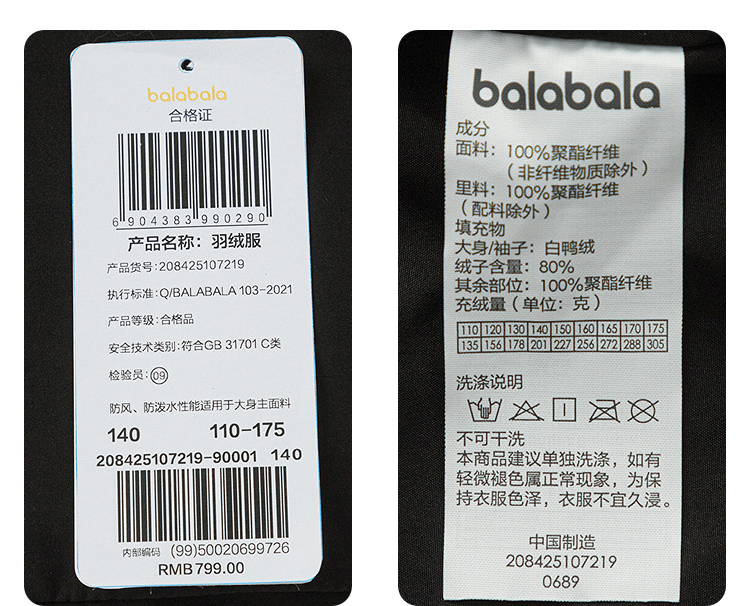 巴拉巴拉balaOne童装儿童羽绒服男女童2025年新款冬加厚保暖外套
