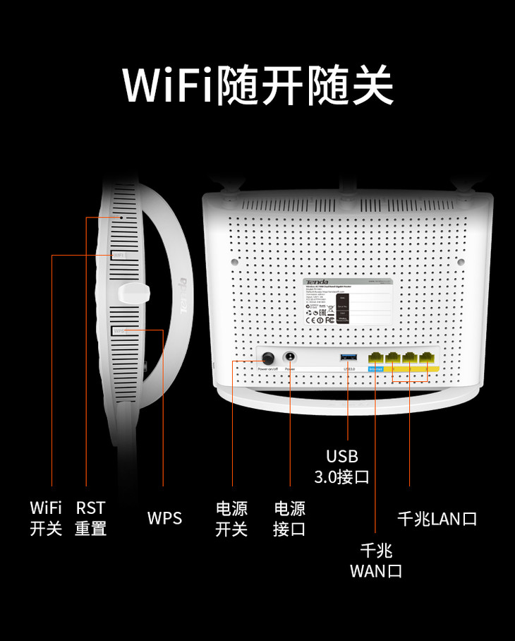 腾达(Tenda)AC15 双千兆路由器 1900M双频全千兆无线路由器 游戏智能提速