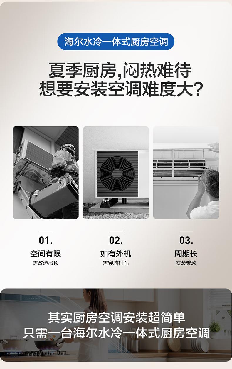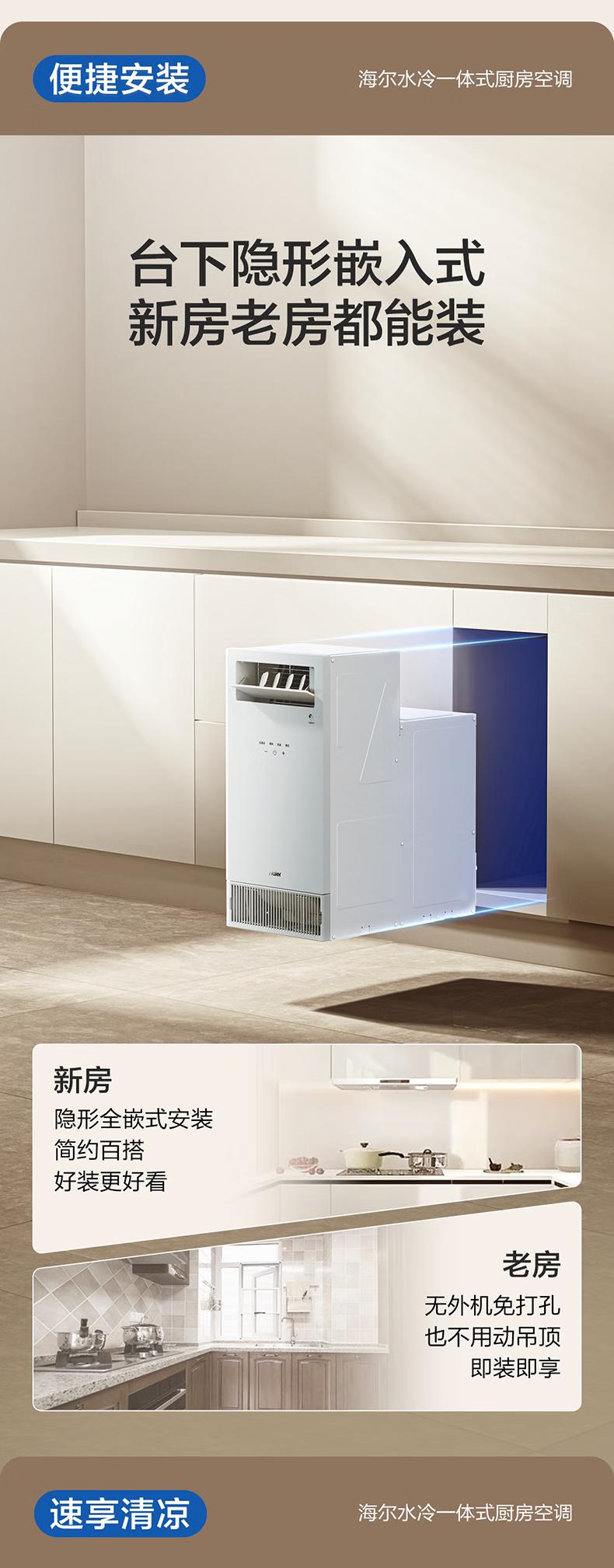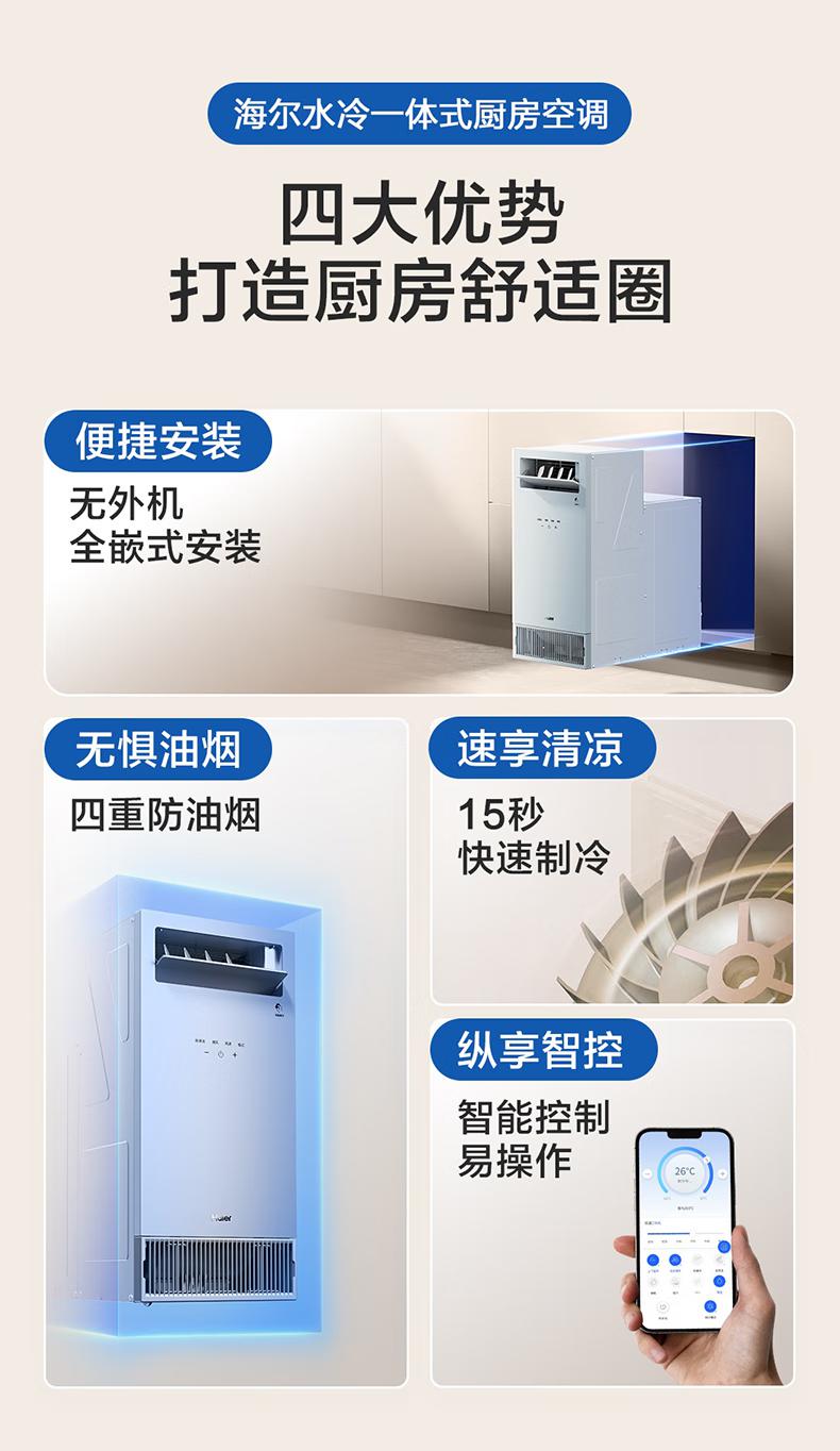 海尔空调水冷一体式厨房空调制水冷无外机一键自清洁舒适大风量嵌入式移动空调省电KCS-28QKA8U1 大1匹 【单冷】厨房空调