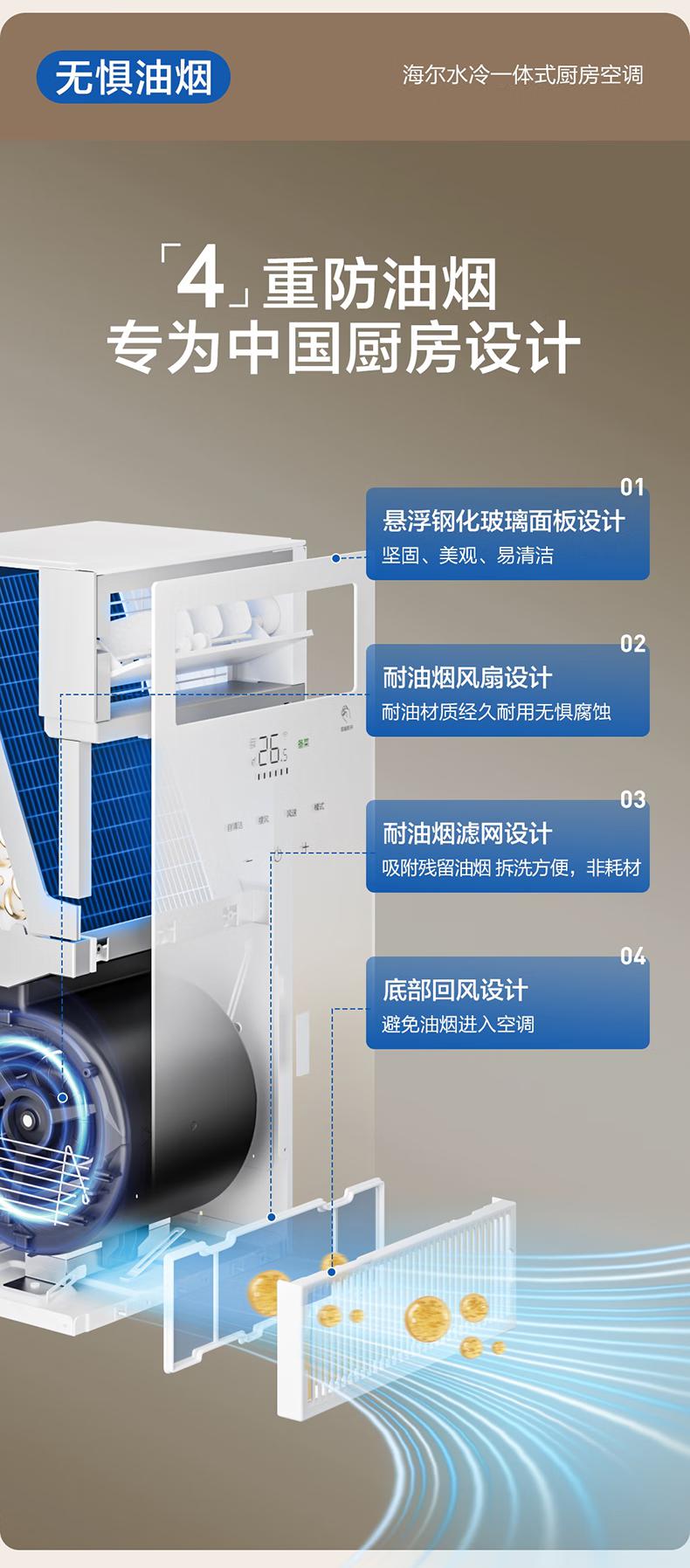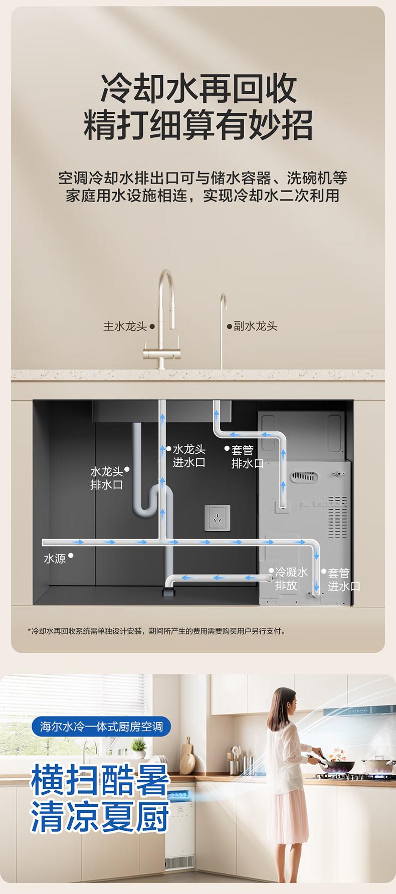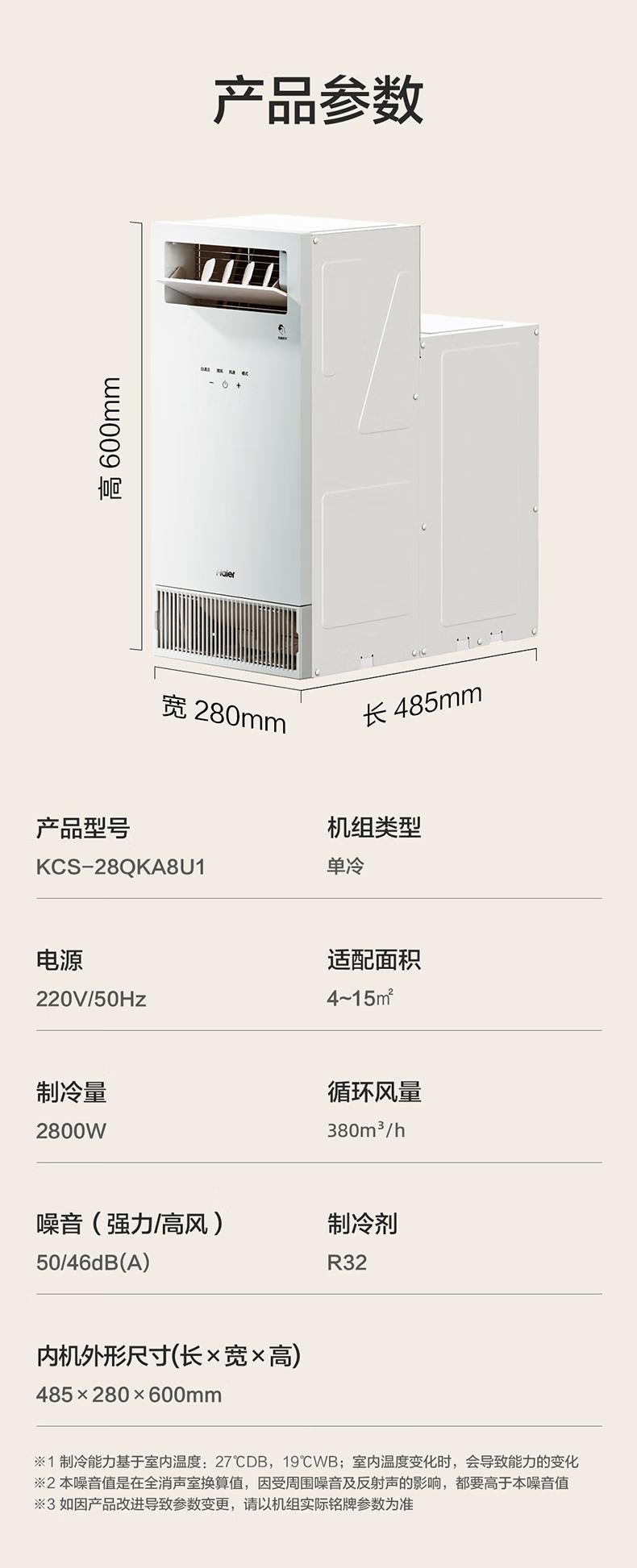 海尔空调水冷一体式厨房空调制水冷无外机一键自清洁舒适大风量嵌入式移动空调省电KCS-28QKA8U1 大1匹 【单冷】厨房空调