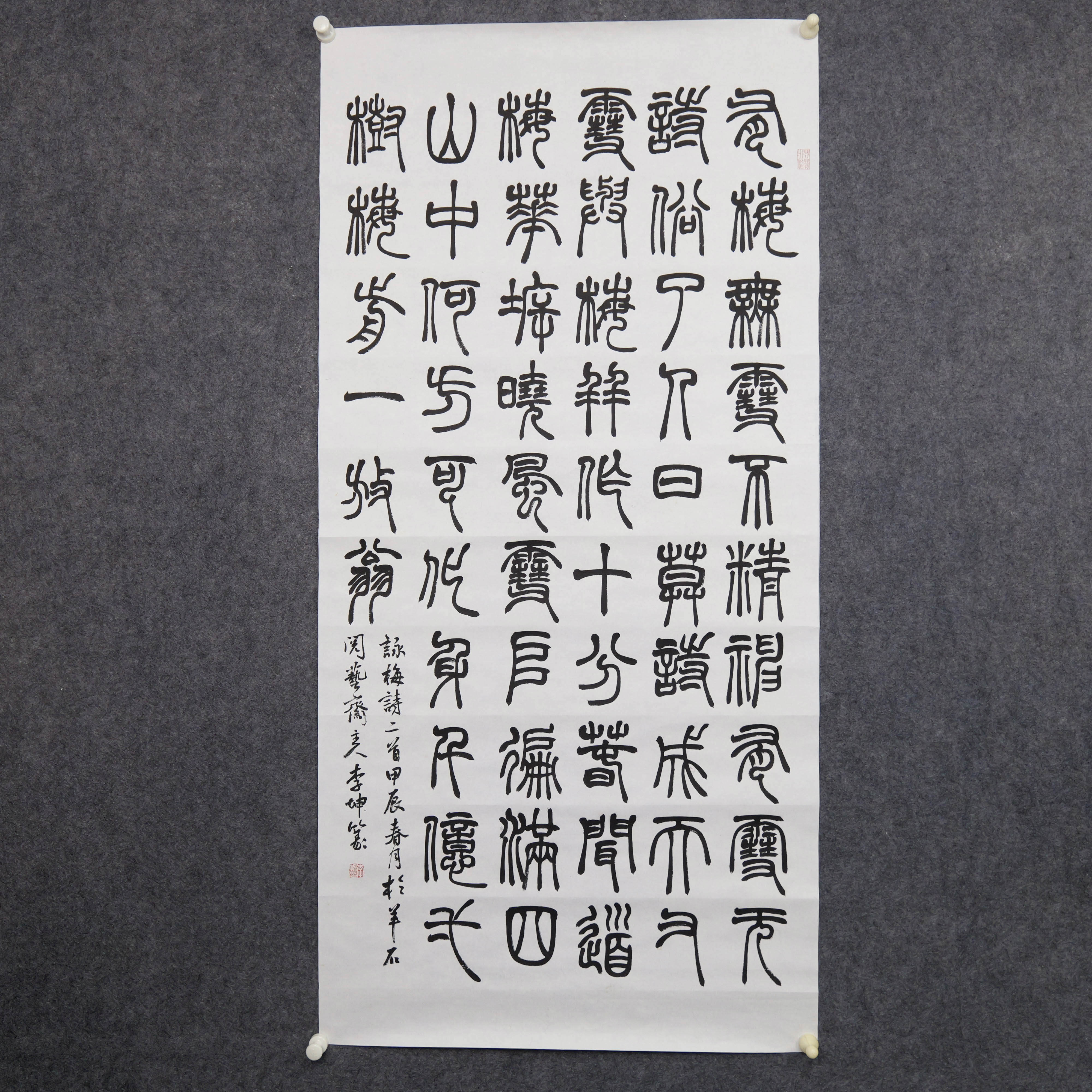 李坤《咏梅诗二首》69x136cm 手写纸本宣纸书法作品