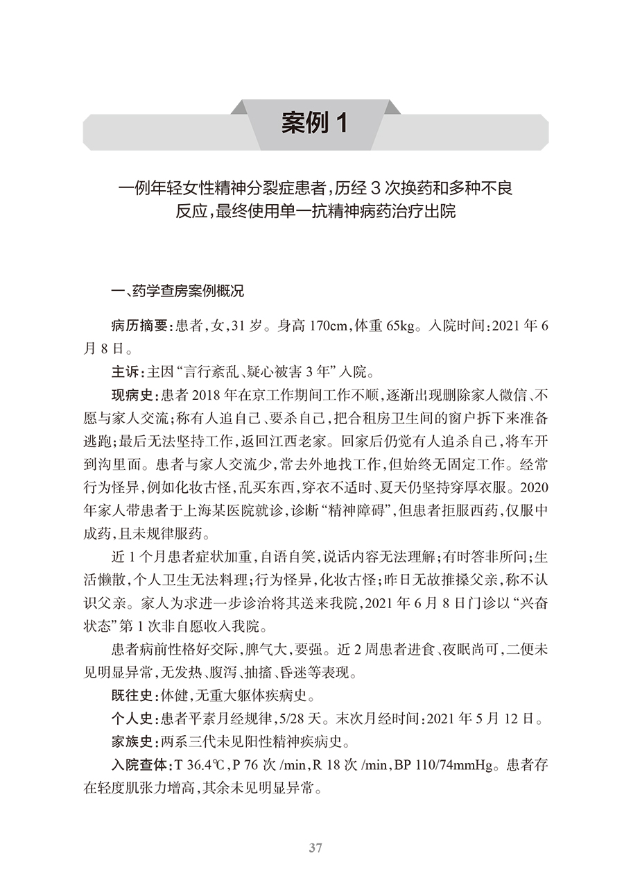 绪论/ 1 第一节 药学查房的概念与标准/ 1 一、欧美国家药学查房现状简介/ 1 二、国内药学查房概况/ 2 三、药学查房团体标准/ 2 第二节 精神科药学查房的特点/ 2 一、精神科药学查房对药师的资质要求/ 3 二、精神科药学查房的临床思维/ 3 三、精神科药学查房的思路/ 4 四、精神科药学查房中的药物治疗学分析/ 4 五、精神科药学查房应注意的问题/ 5 第三节 精神科药学相关技术/ 6 一、患者药学画像/ 6 二、药物基因组学/ 8 三、治疗药物监测/ 12 四、群体药代动力学/ 21 五、药物治疗管理/ 24 六、综合用药管理/ 27 七、精神科药学技术联合应用实现精准用药/ 33 案例1 一例年轻女性精神分裂症患者,历经3 次换药和多种不良 反应,最终使用单一抗精神病药治疗出院/ 37 案例2 难治性精神分裂症患者,治疗过程中出现高催乳素血症, 中西医结合治疗好转出院/ 60 案例3 一例精神分裂症伴迟发性运动障碍患者,经个体化药物治疗, 症状得到控制/ 83 案例4 一例注意缺陷多动障碍儿童患者,用药后出现肝功能异常, 经个体化治疗好转出院/ 104 案例5 一例备孕双相障碍患者,综合使用药物基因组学和治疗 药物监测技术,实现疗效与安全性的平衡/ 125 案例6 一例顽固性腹痛的抑郁障碍患者,药物基因组学个体化 治疗显效/ 150 案例7 一例顽固性失眠的女性抑郁症患者,药物耐受能力差, 个体化药物治疗改善疗效与安全性/ 173 案例8 一例慢性波动性病程的围绝经期抑郁患者,个体化药物 治疗显效/ 195 案例9 多种镇静催眠药联合使用的老年抑郁患者,经抗抑郁药 足剂量治疗和镇静催眠药重整,症状缓解/ 215 案例10 合并多种躯体疾病的老年抑郁患者,经个体化选药与 剂量调整,好转出院/ 236 附录/ 262 附表1 基于CYP2D6 表型的抗抑郁药推荐剂量/ 262 附表2 基于CYP2C19 和CYP2B6 表型的舍曲林给药剂量建议/ 266 附表3 基于CYP2D6 和CYP3A4 表型的抗精神病药用药建议 汇总/ 268 附表4 常见肝药酶抑制剂和诱导剂/ 268 附表5 精神科常见药物和物质及其代谢酶/ 269 附表6 常用精神药物的治疗参考浓度范围、实验室警戒浓度及 推荐等级/ 272 附表7 精神科常用母药、代谢产物和活性成分的剂量相关浓度 范围(DRC)因子/ 277 附表8 精神药物代谢产物浓度与母药浓度比值(MPR)/ 286 附表9 精神科常用检验项目采血要求、参考值及临床意义/ 288