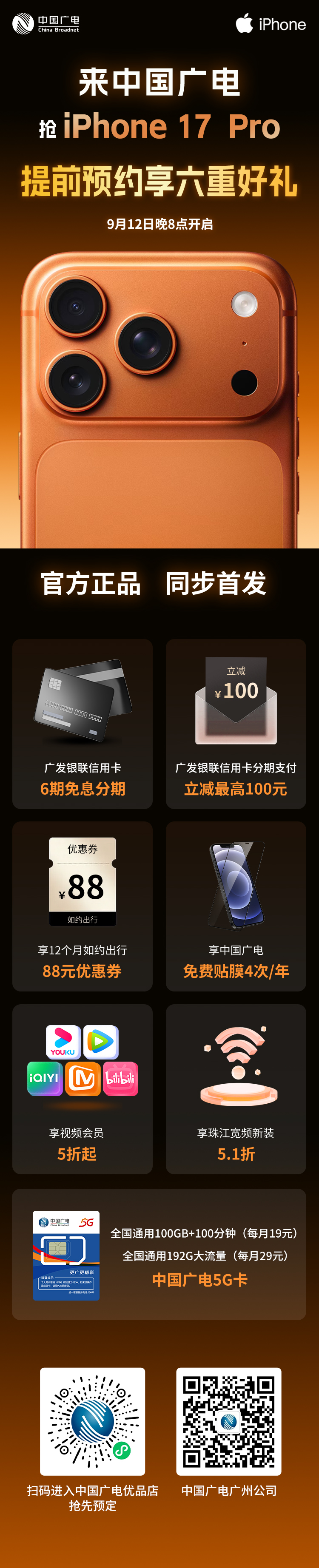 【预约办理专用,需前往线下营业厅缴费办理】【每个用户限购1台】 Apple iPhone 17系列,官方正品,同步首发!