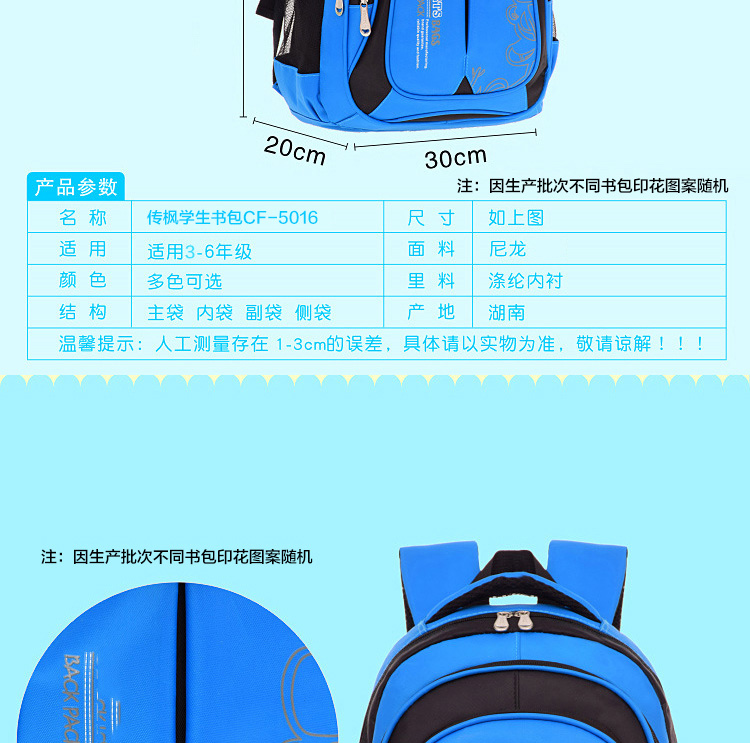 传枫 小学生书包1-3-6年级书包耐磨儿童书包背包6-12周岁男女生双肩包CF-5016