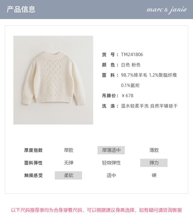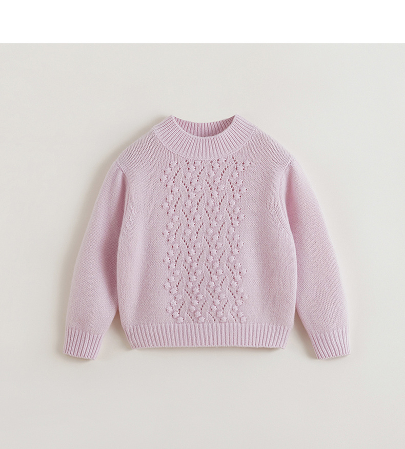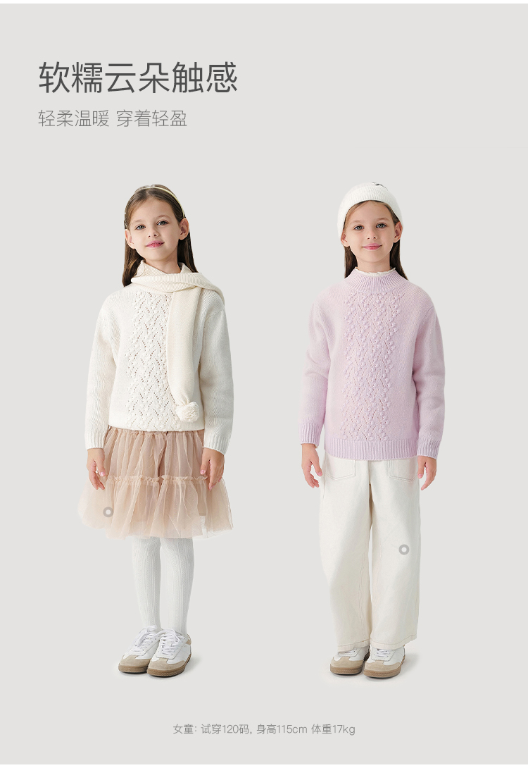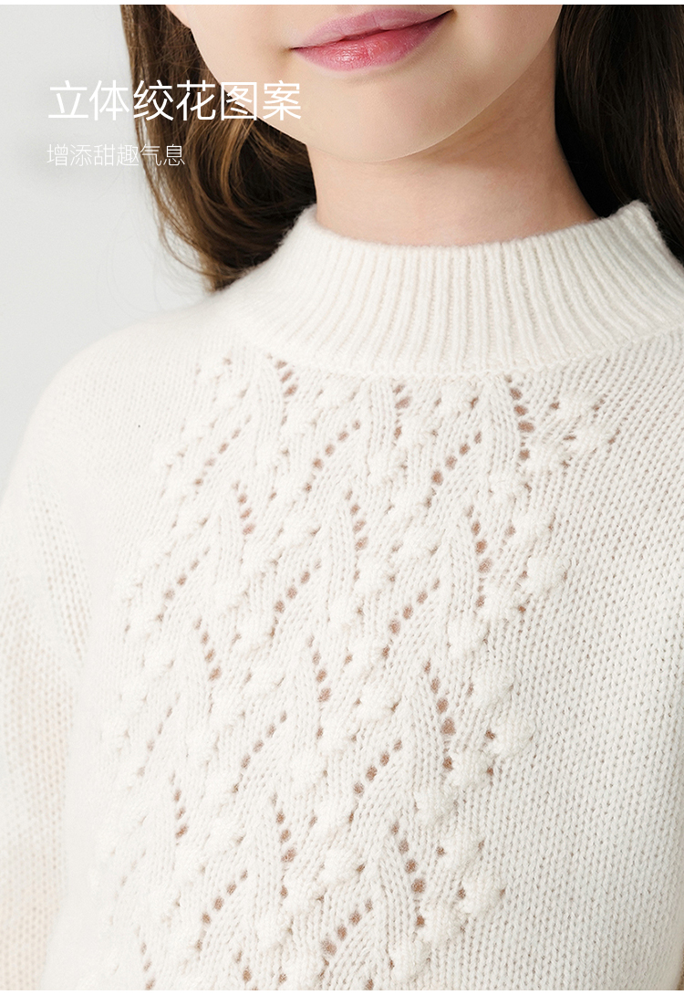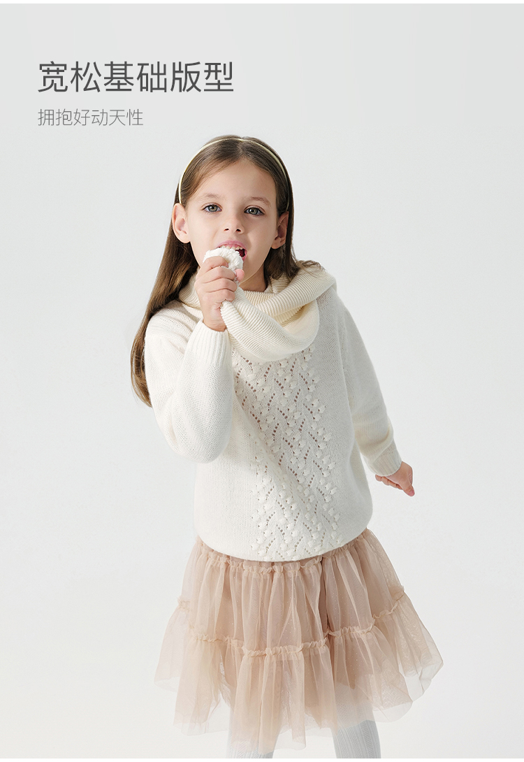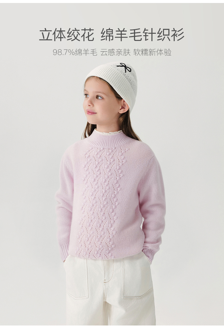 马克珍妮女童立体绞花宽松绵羊毛针织衫儿童毛衣秋冬新款241806