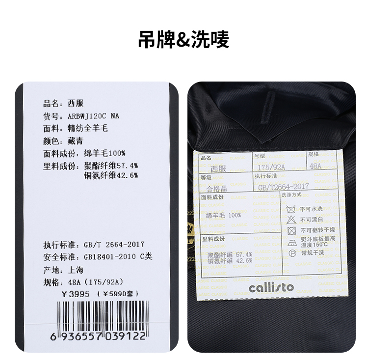 callisto高智系列山影灰黑色千鸟格绵羊毛西服