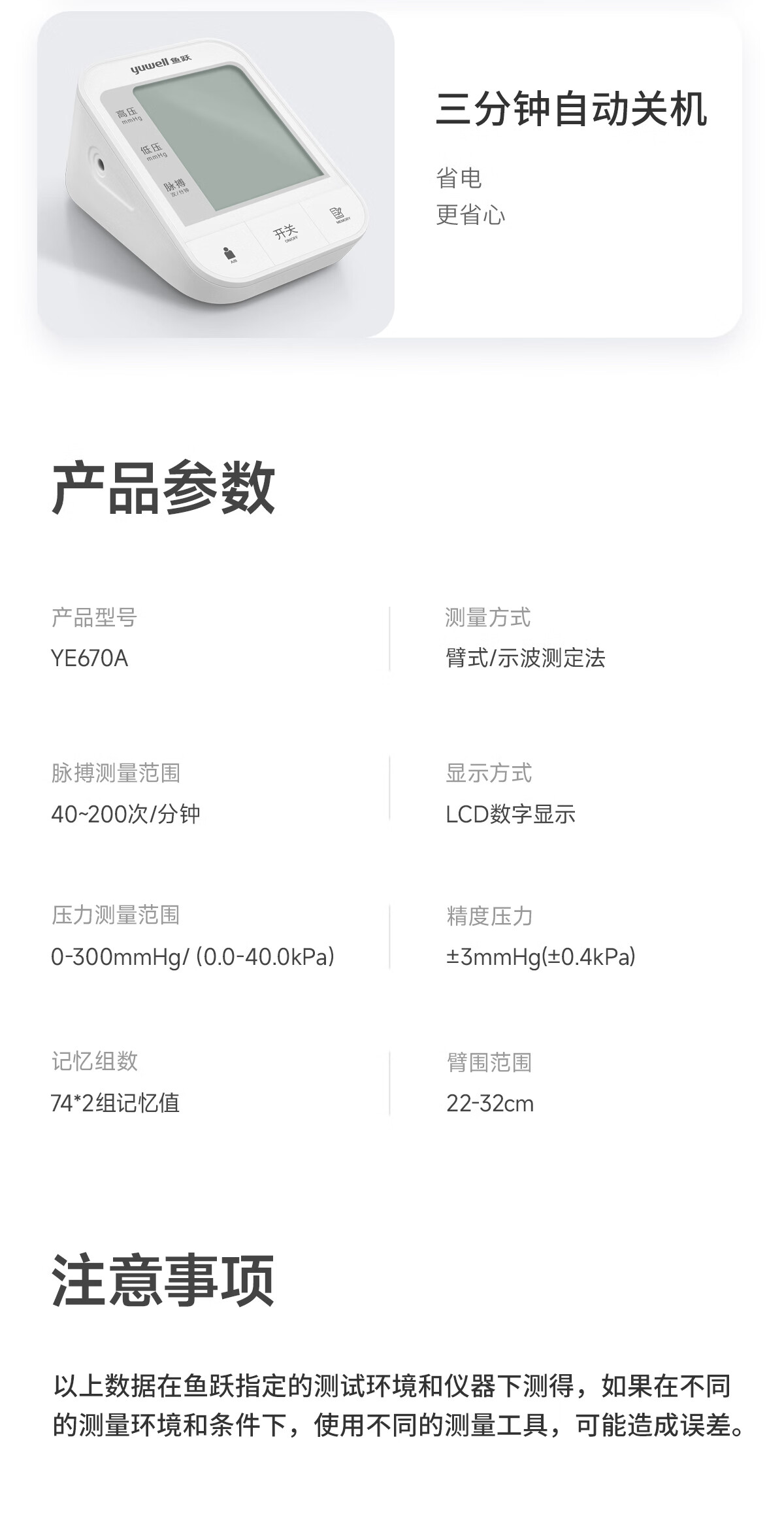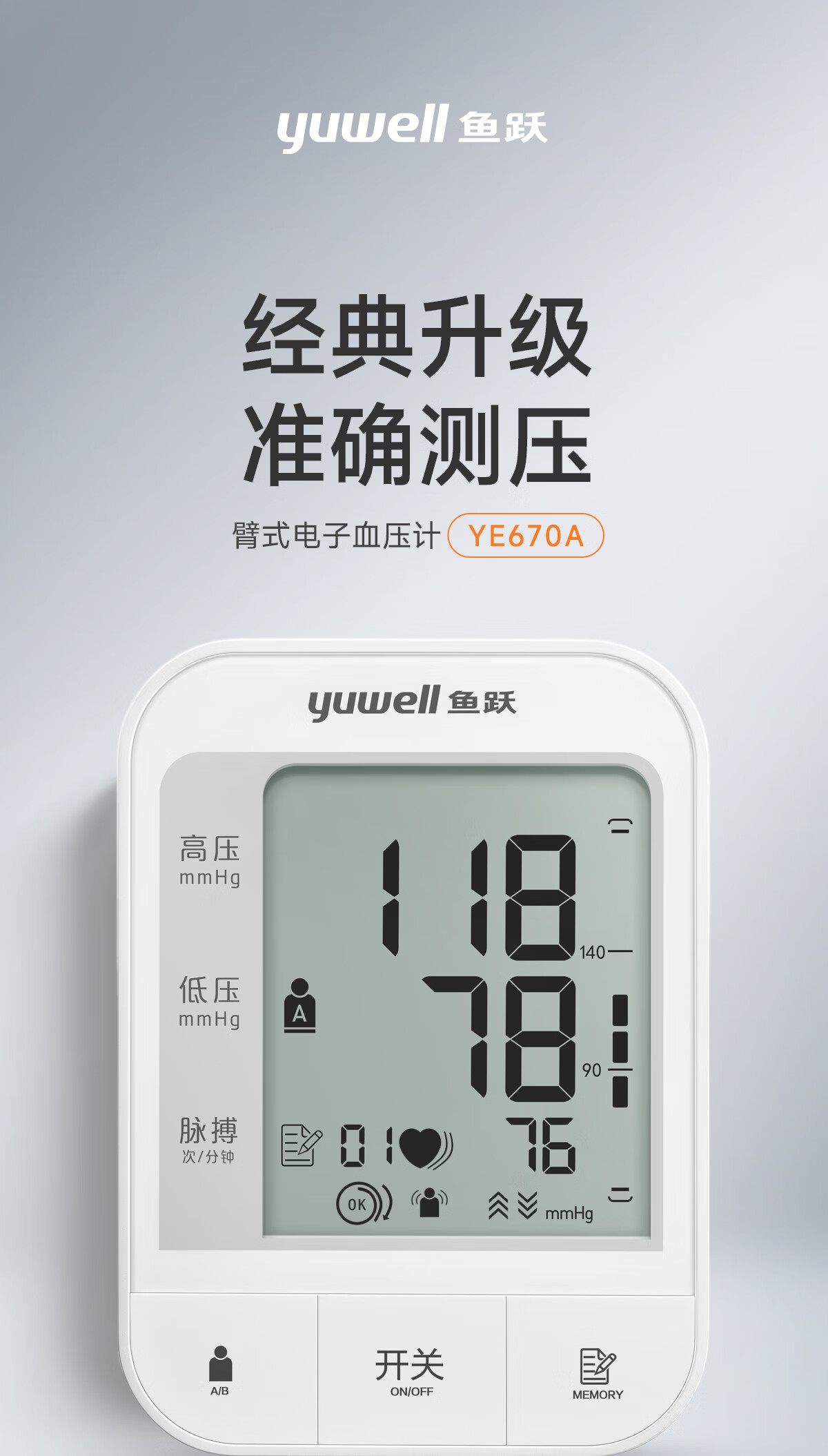 [鱼跃]臂式电子血压计家用YE670A