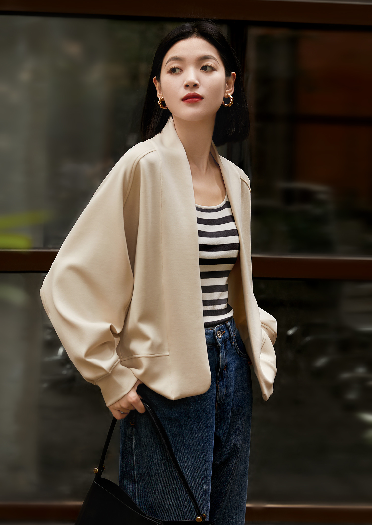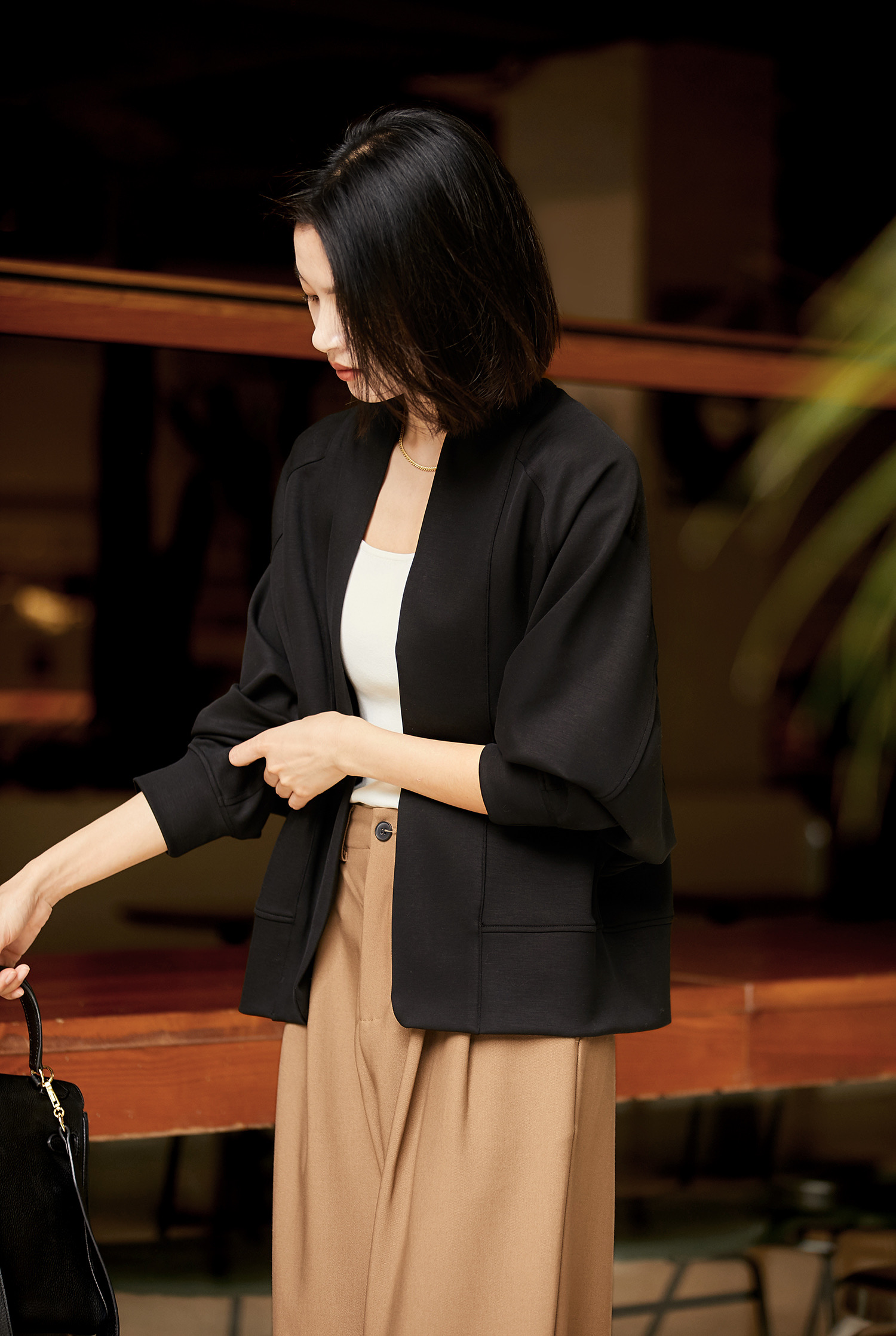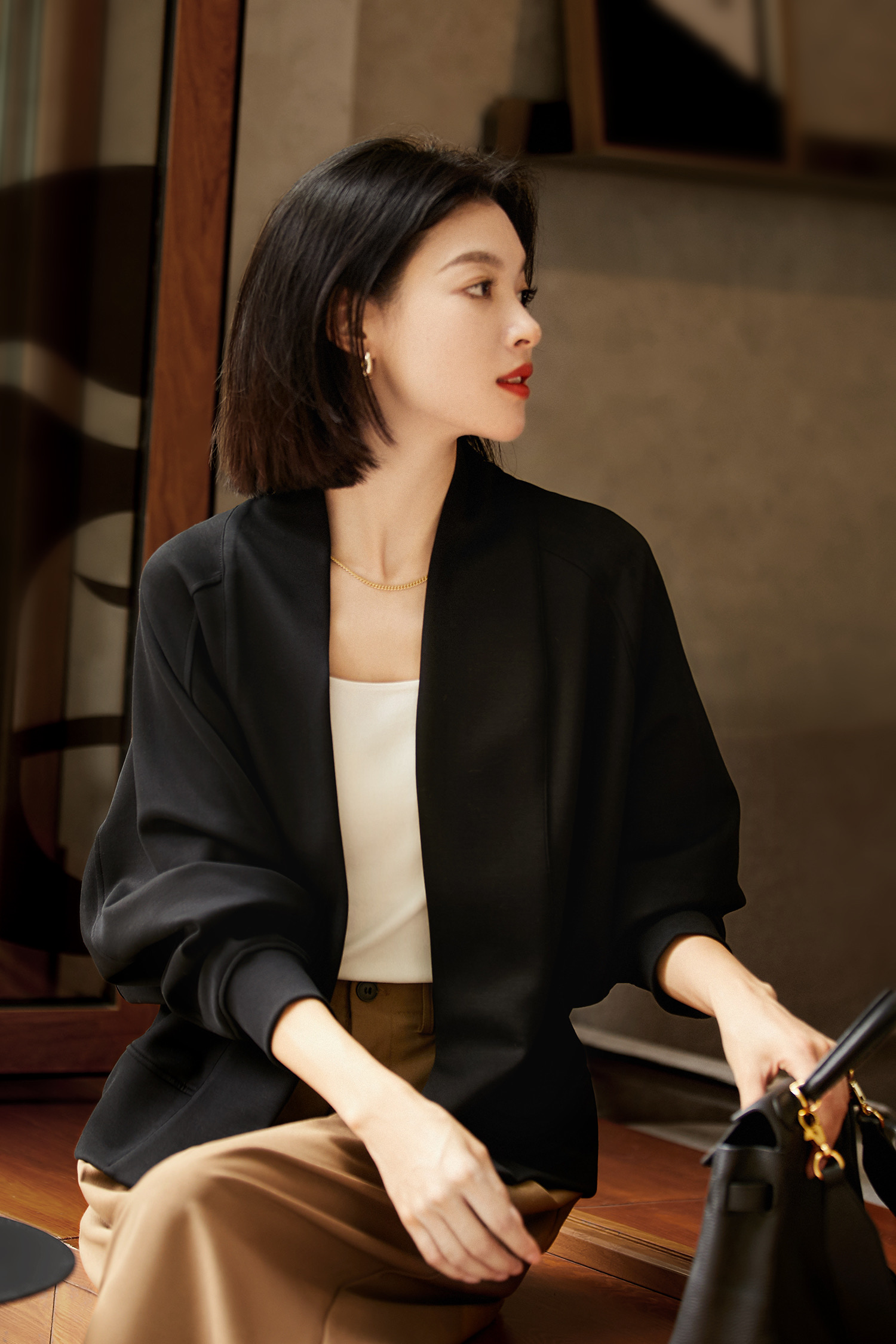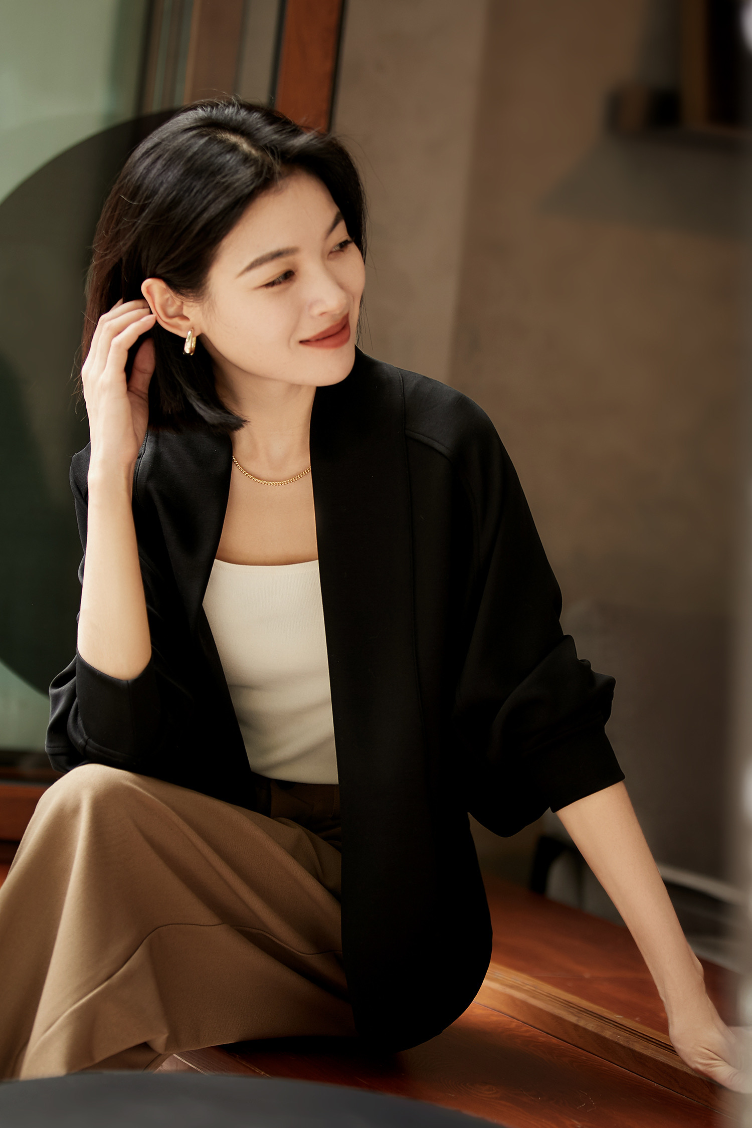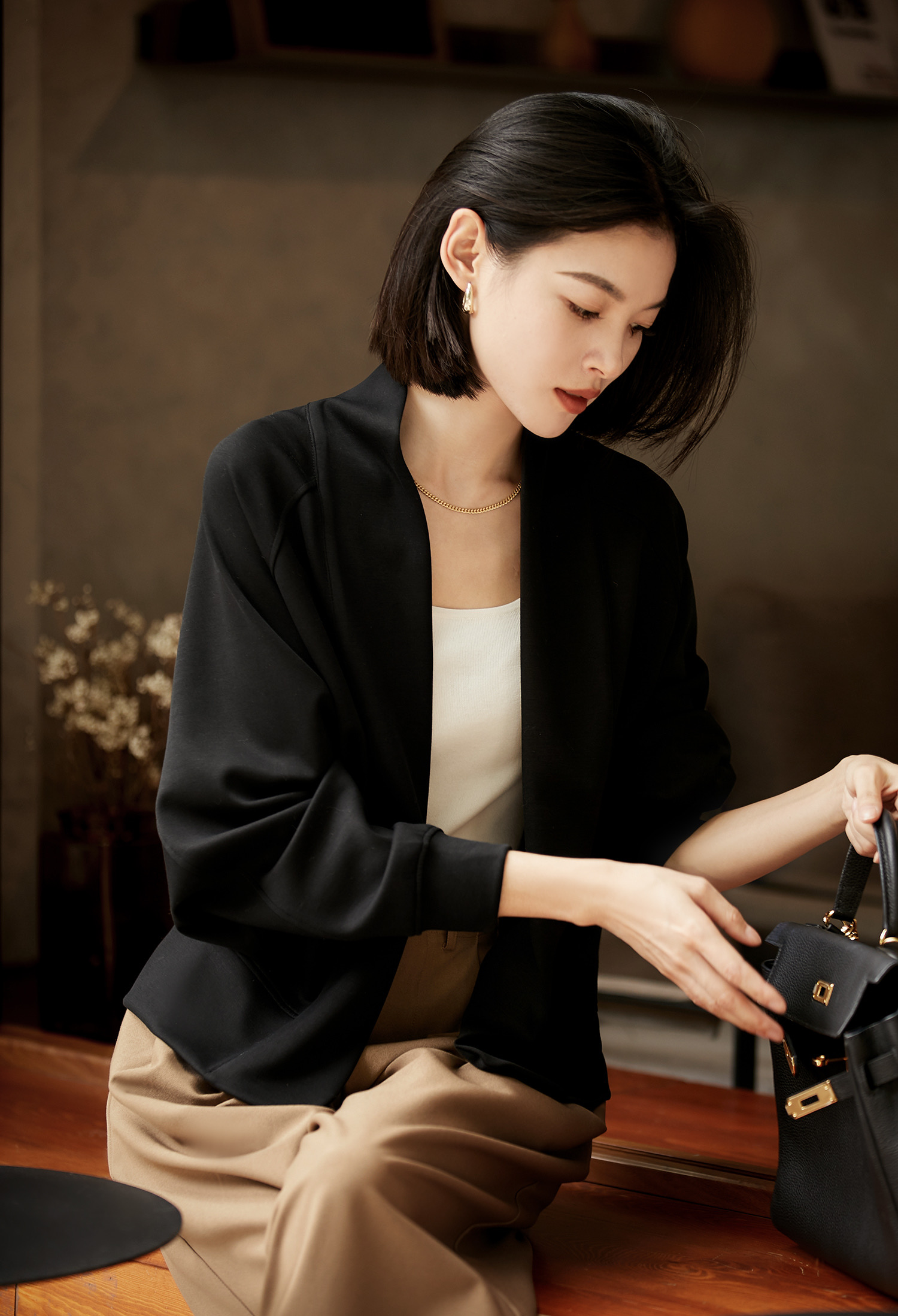 茧墨 精纺气质烫钻羊毛翻领显瘦开衫