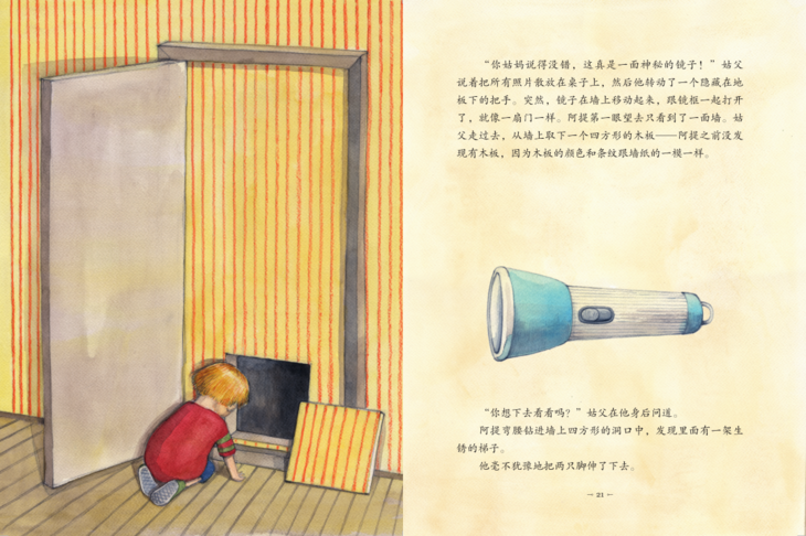 一年夏天,小男孩阿提在姑妈家玩耍时,无意中发现镜子后面有一个密室。原来十几年前,这个密室是用来藏亲戚盖佐叔叔的。阿提和表妹艾莉卡像发现了宝藏一样,在里面玩耍。一年后,姑妈病重,正当每个人都愁眉不展时,盖佐叔叔的包裹到了。
