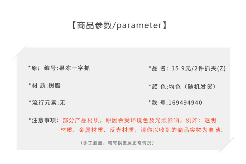 15.9元/2件果冻一字抓抓夹-纪念日百货门店同款169494940