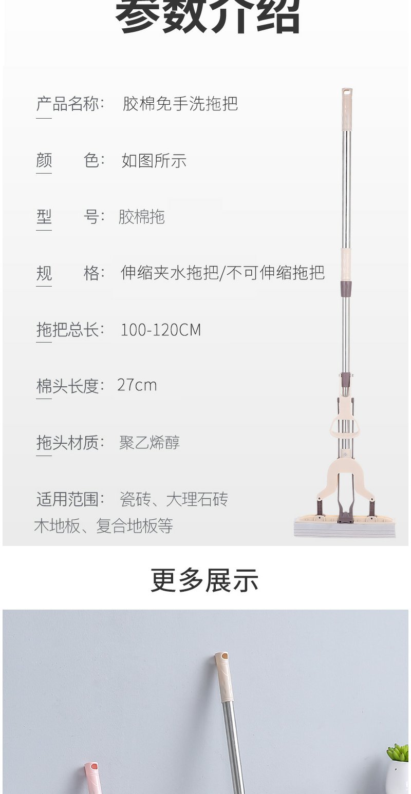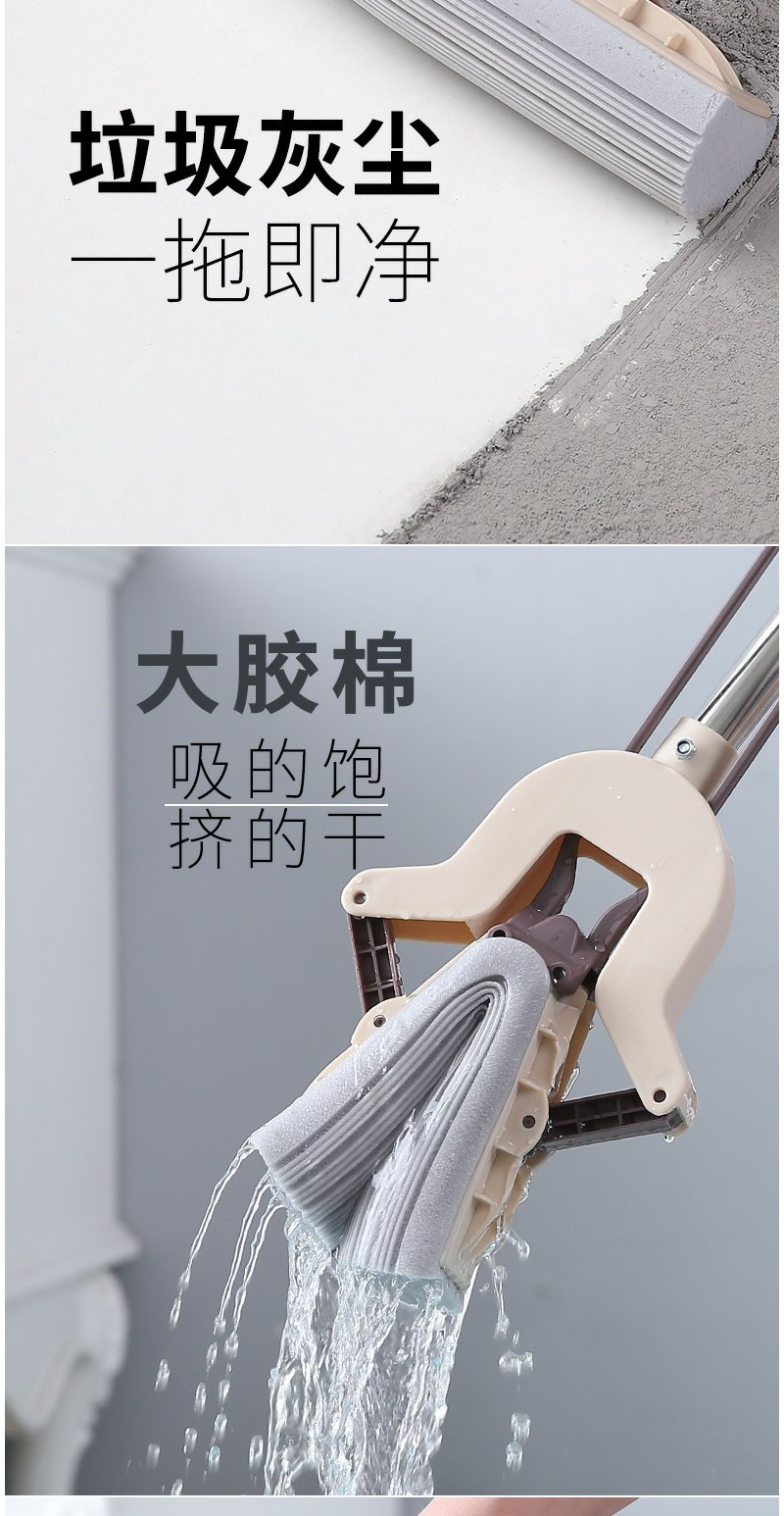 【吸水海绵拖把】可伸缩 懒人拖布旋转对折式家用胶棉拖把头免手洗布净