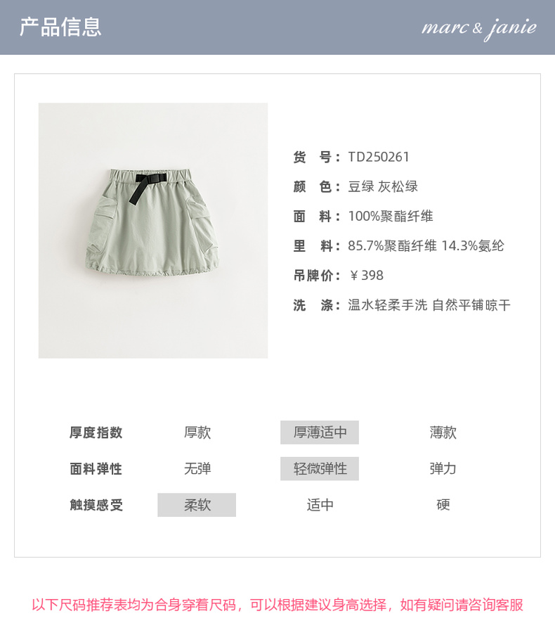 马克珍妮女童城市户外速干花苞裙裤儿童短裙2025年春装新款250261