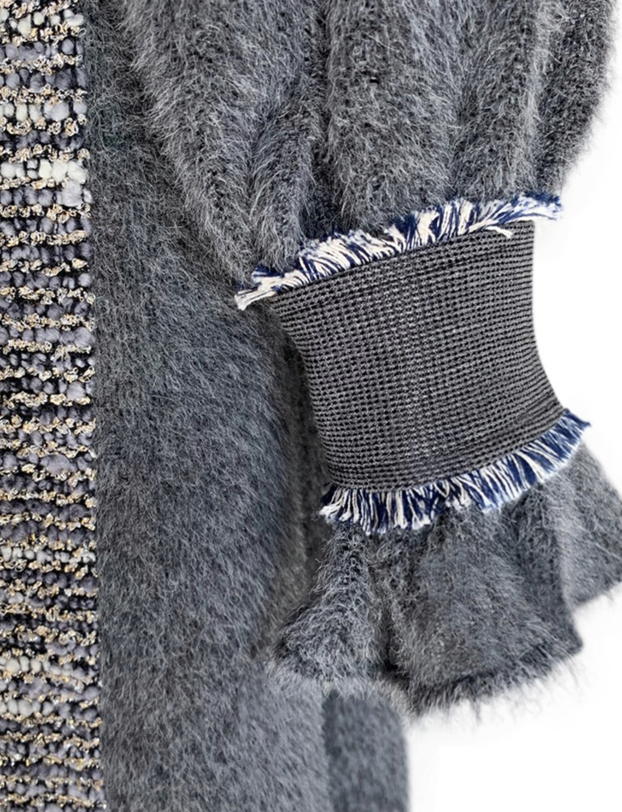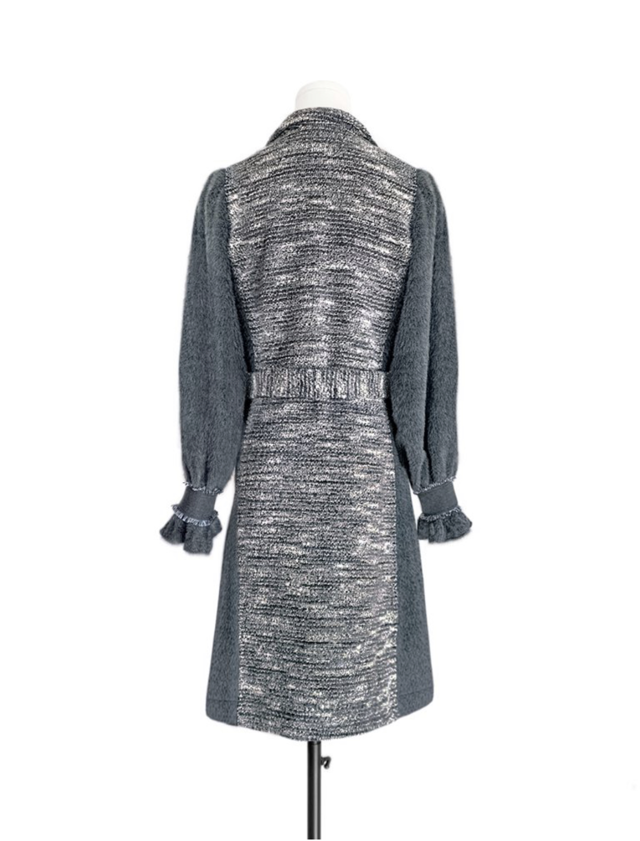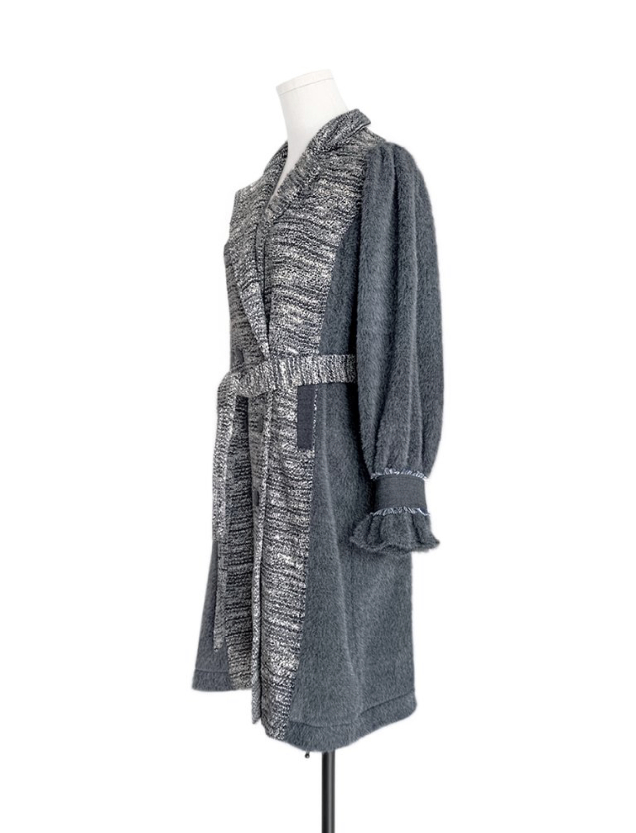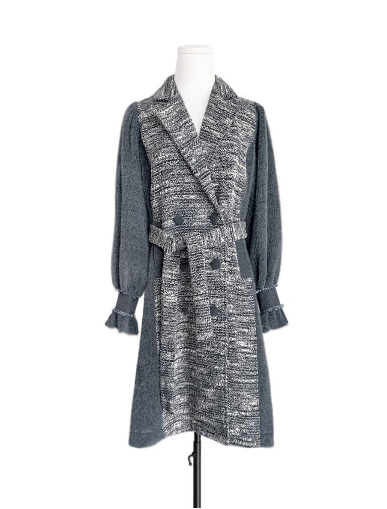TYNVIE 灯笼袖拼接中长大衣 - 灰色