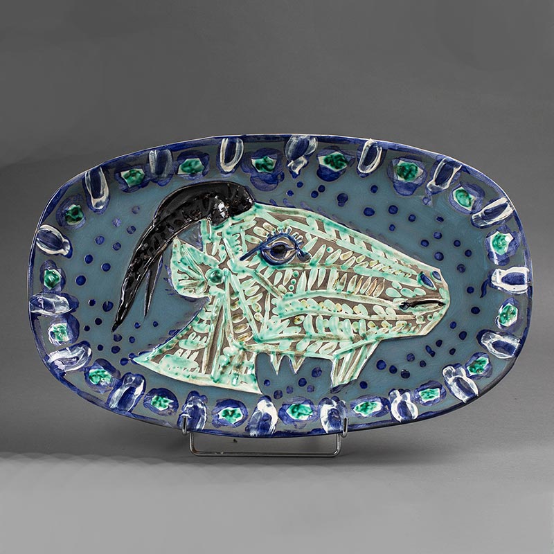 1952年代西班牙艺术巨匠毕加索与法国Madoura工坊合作出品限量装饰陶盘「Goat's Head in Profile (A.R. 145) 山羊头 145」